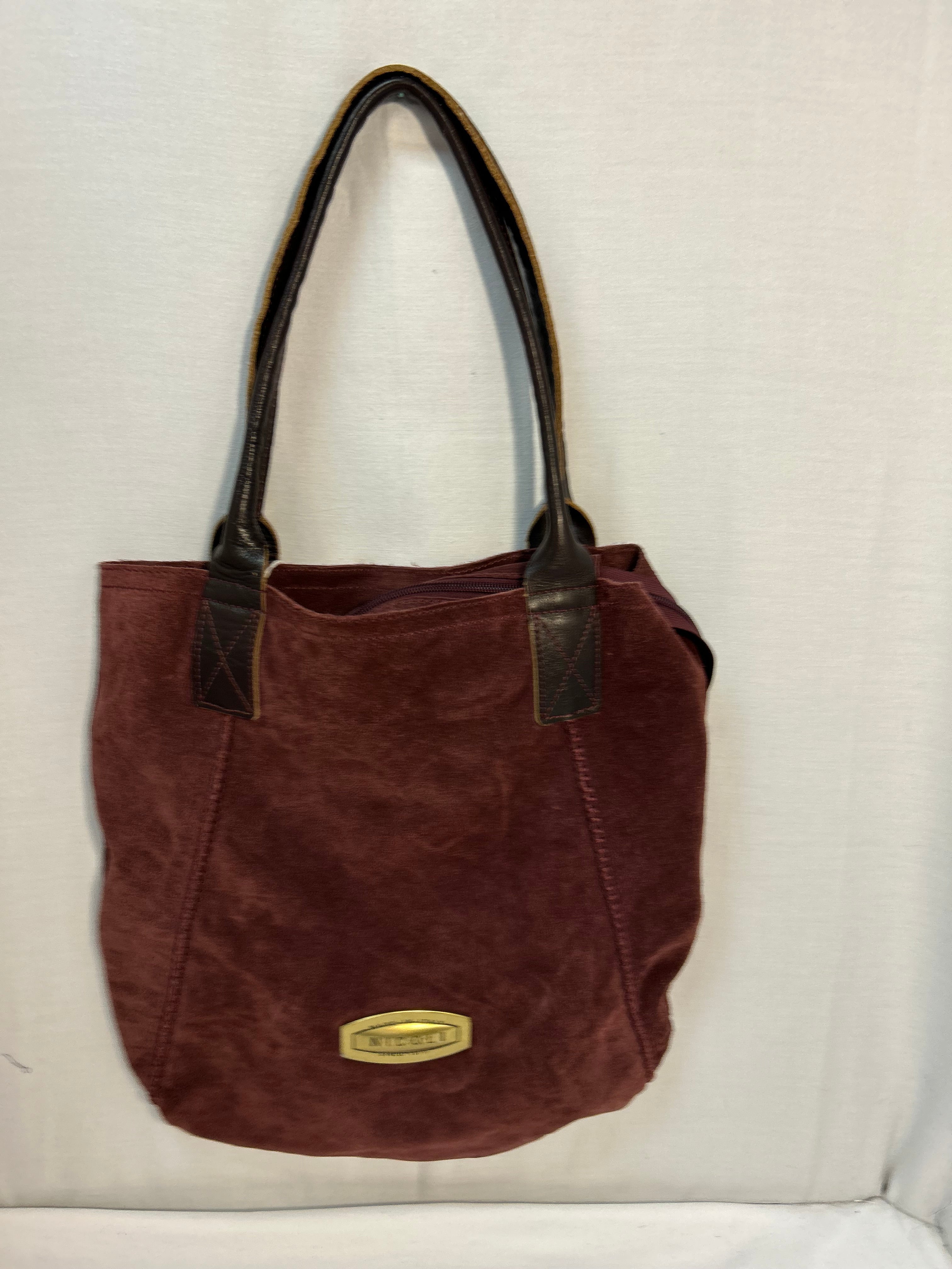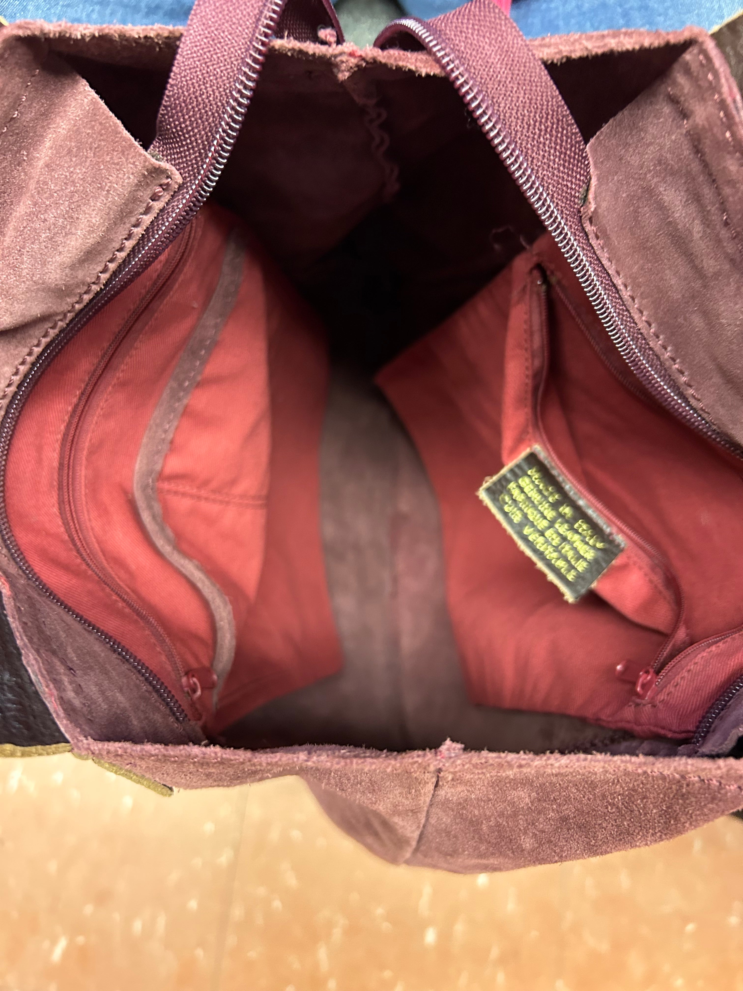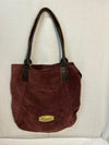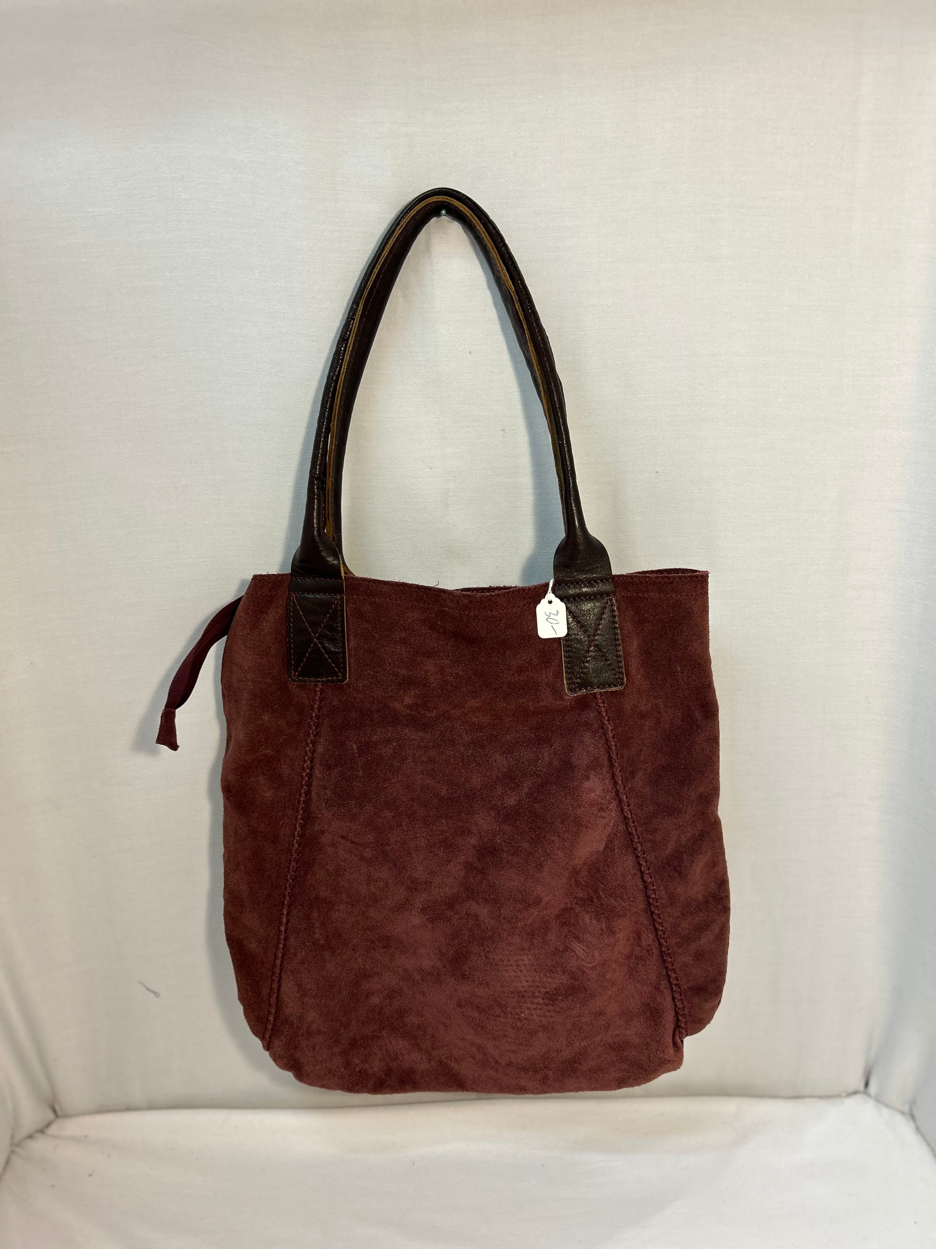Ladies Suede Purse, Wine, 16" x 15", Previously Loved