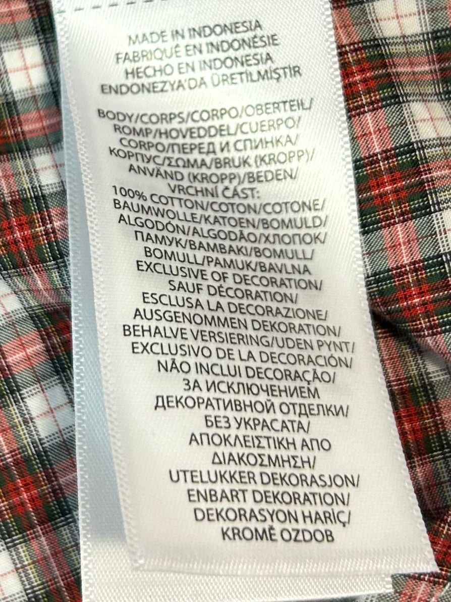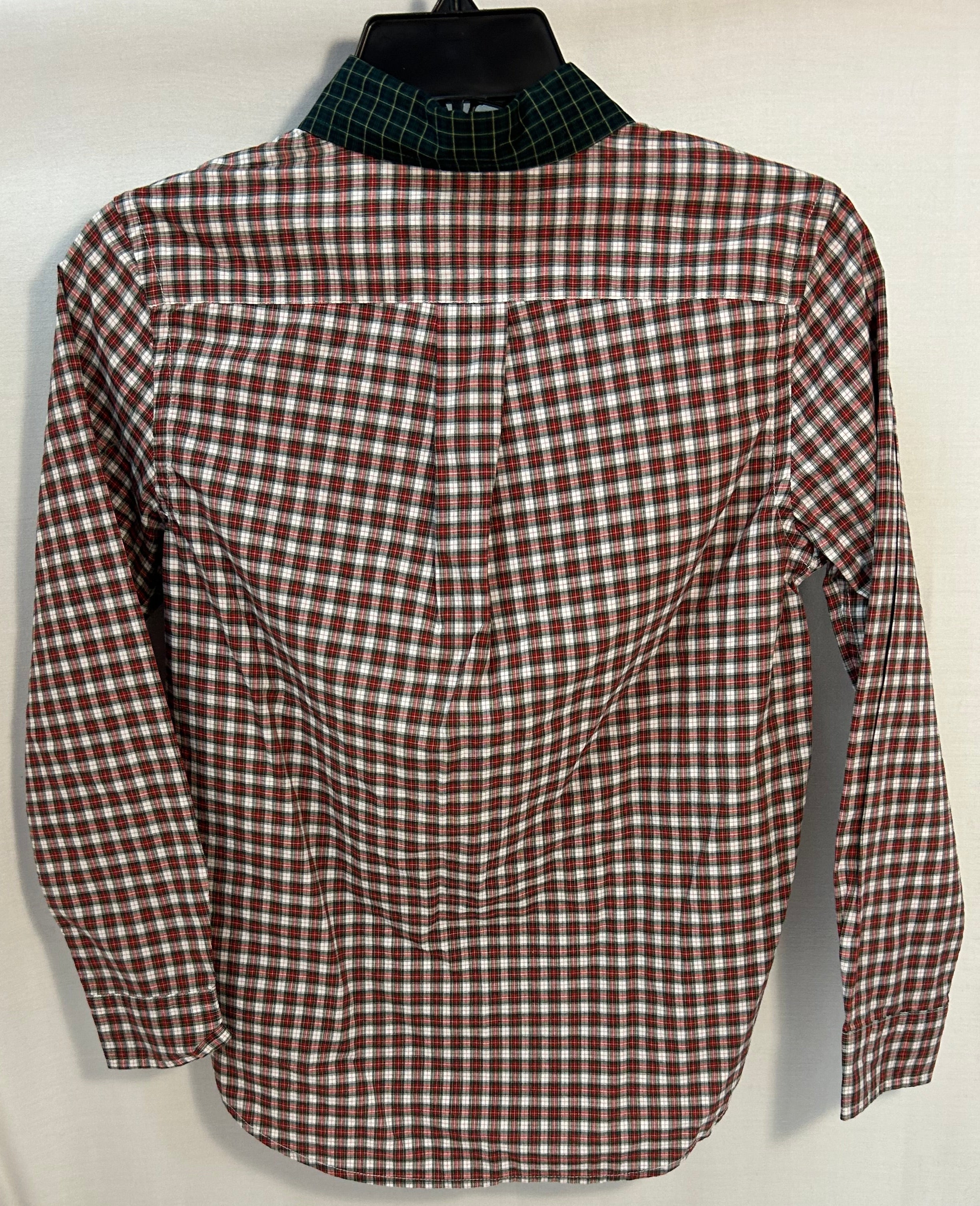 Youth Long Sleeve Plaid Shirt, Red/White, 10-12, 100% Cotton, NEW
