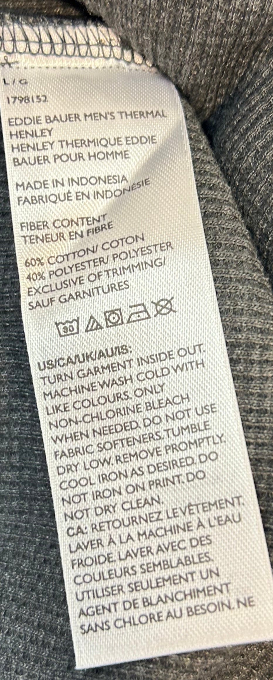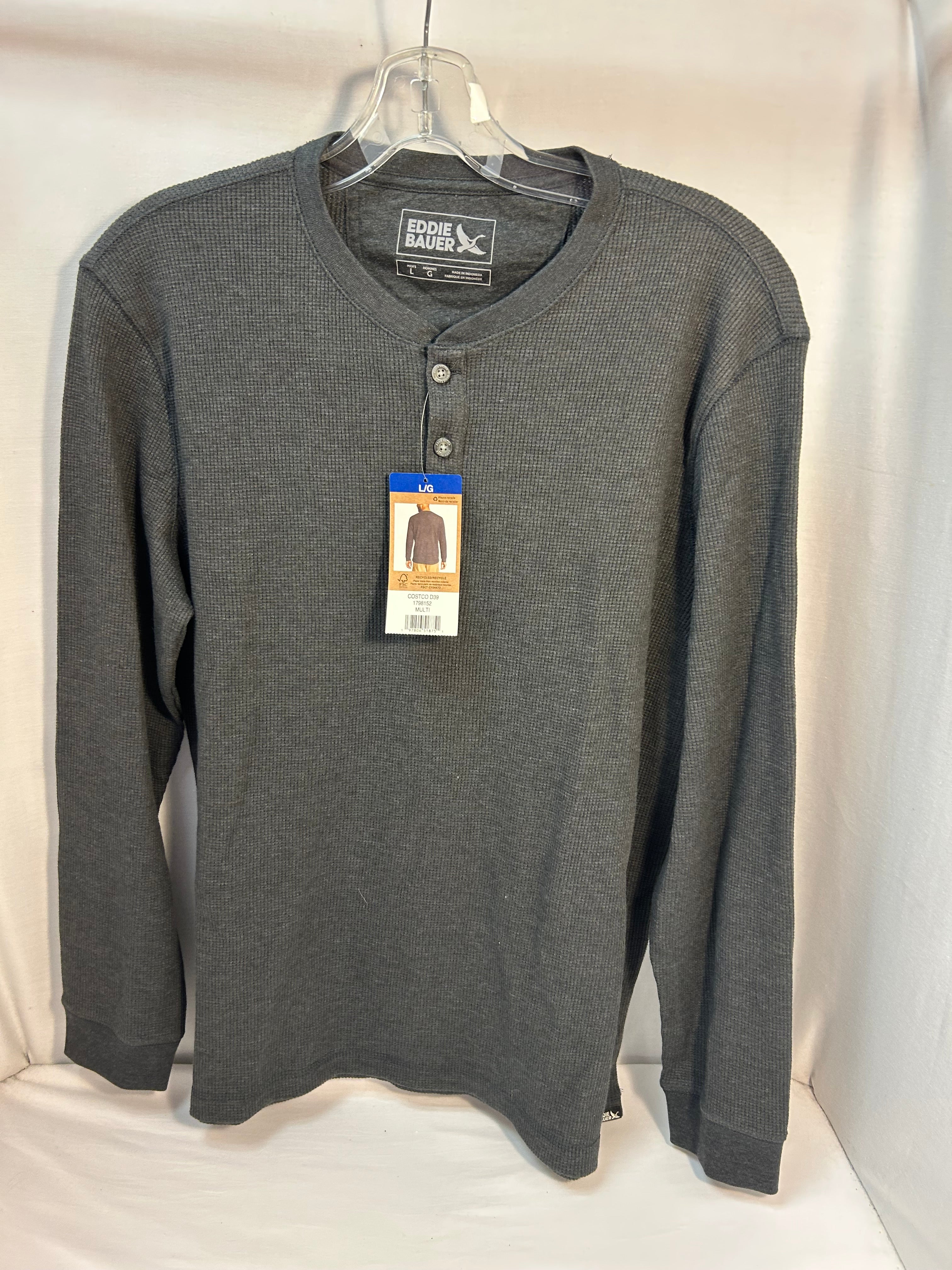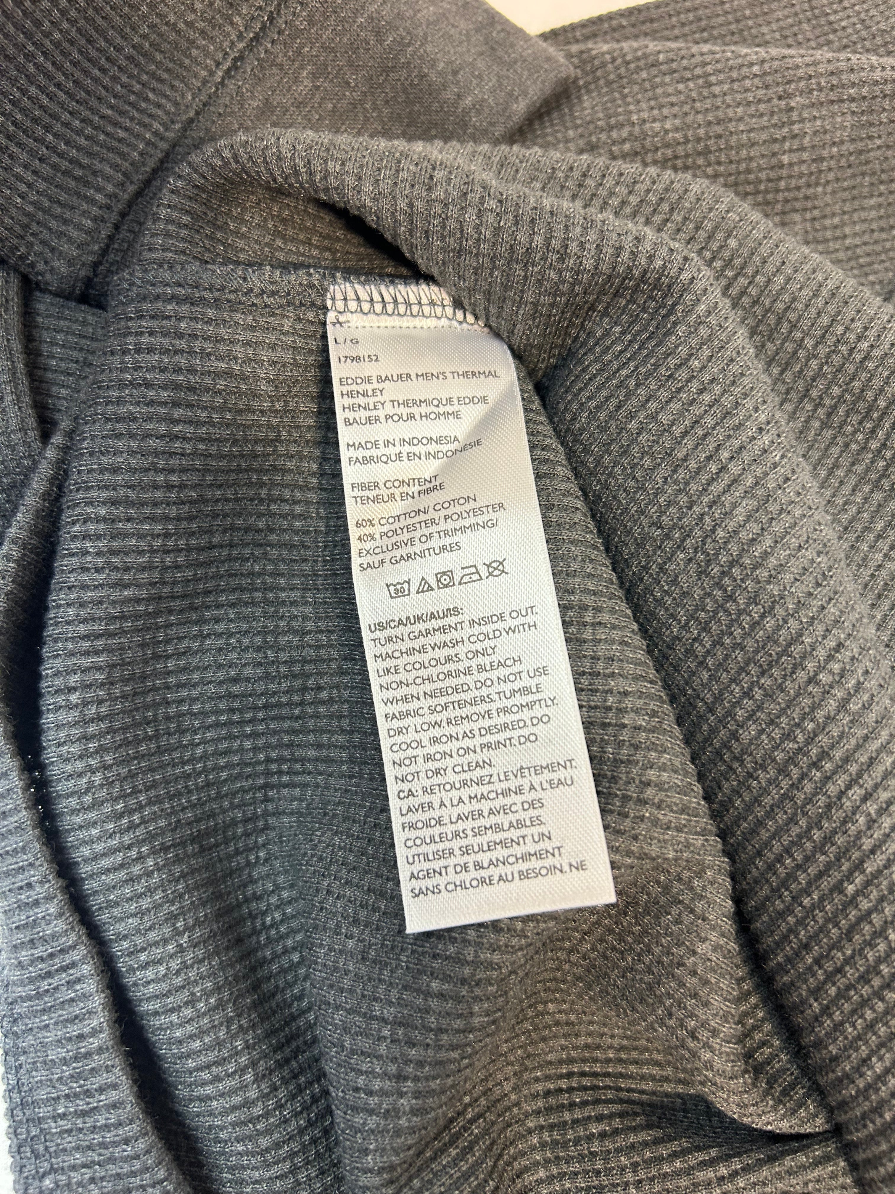 Henley Style Waffle Knit Thermal Long Sleeve Shirt. Grey Size Medium