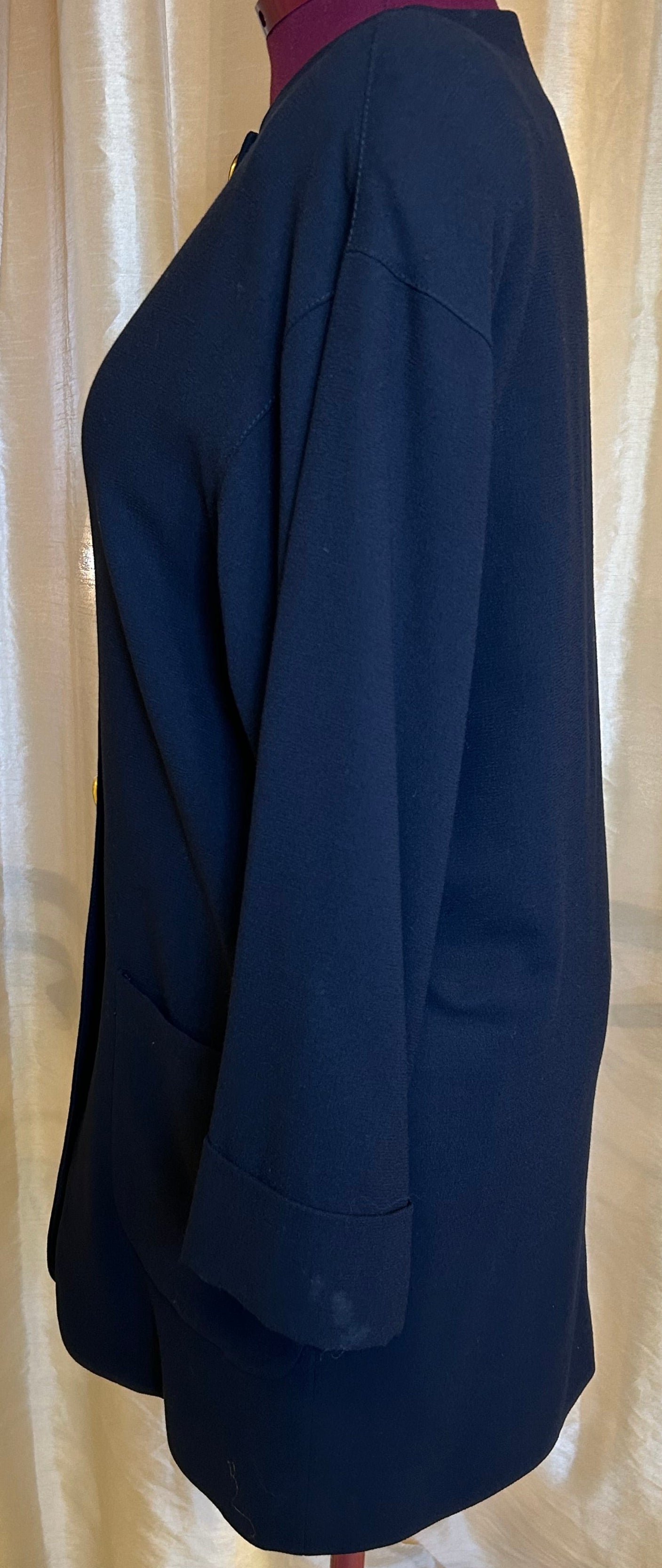 3-Button Long Sleeve Jacket, Navy, Below Hip Length, Large