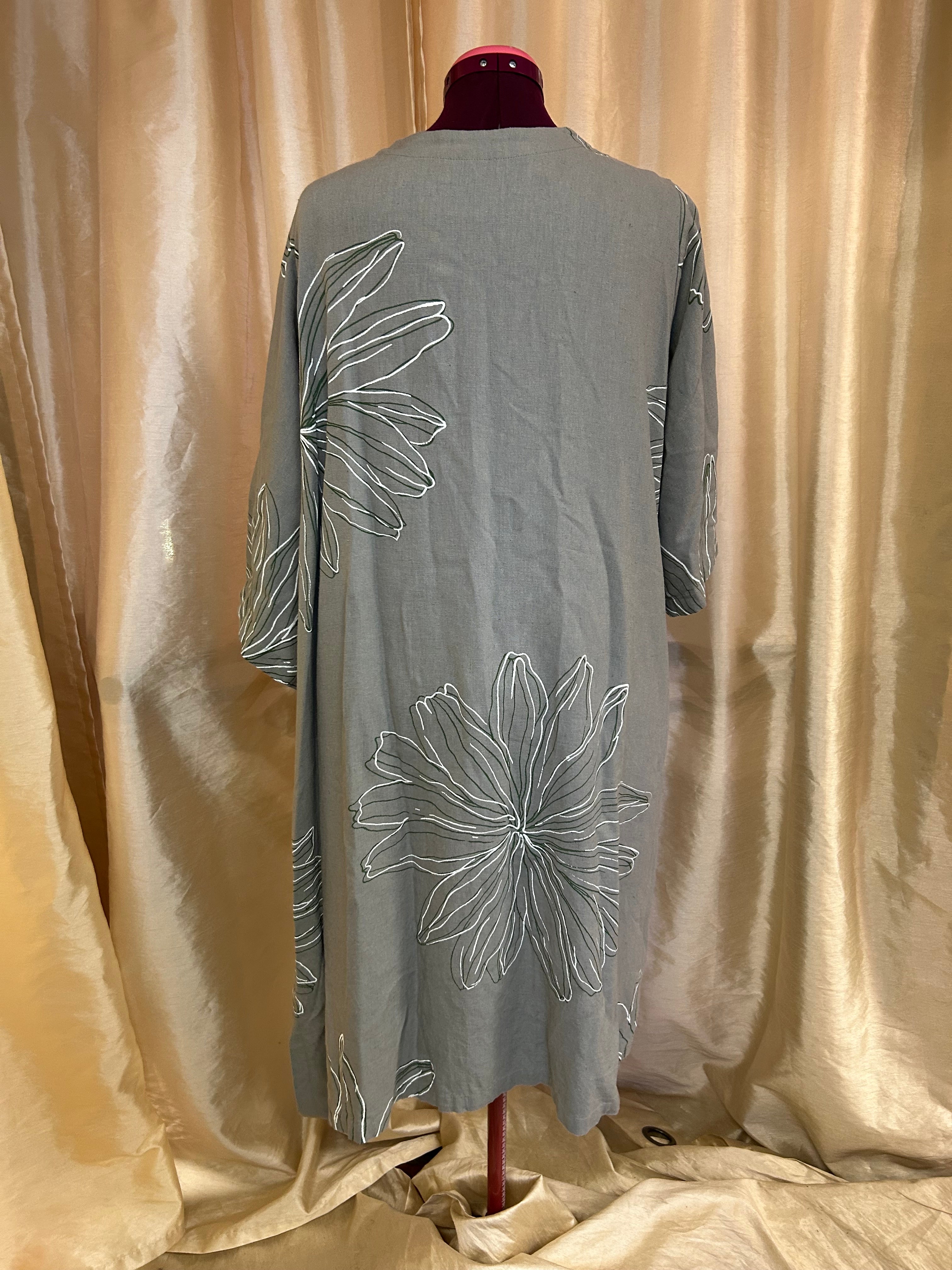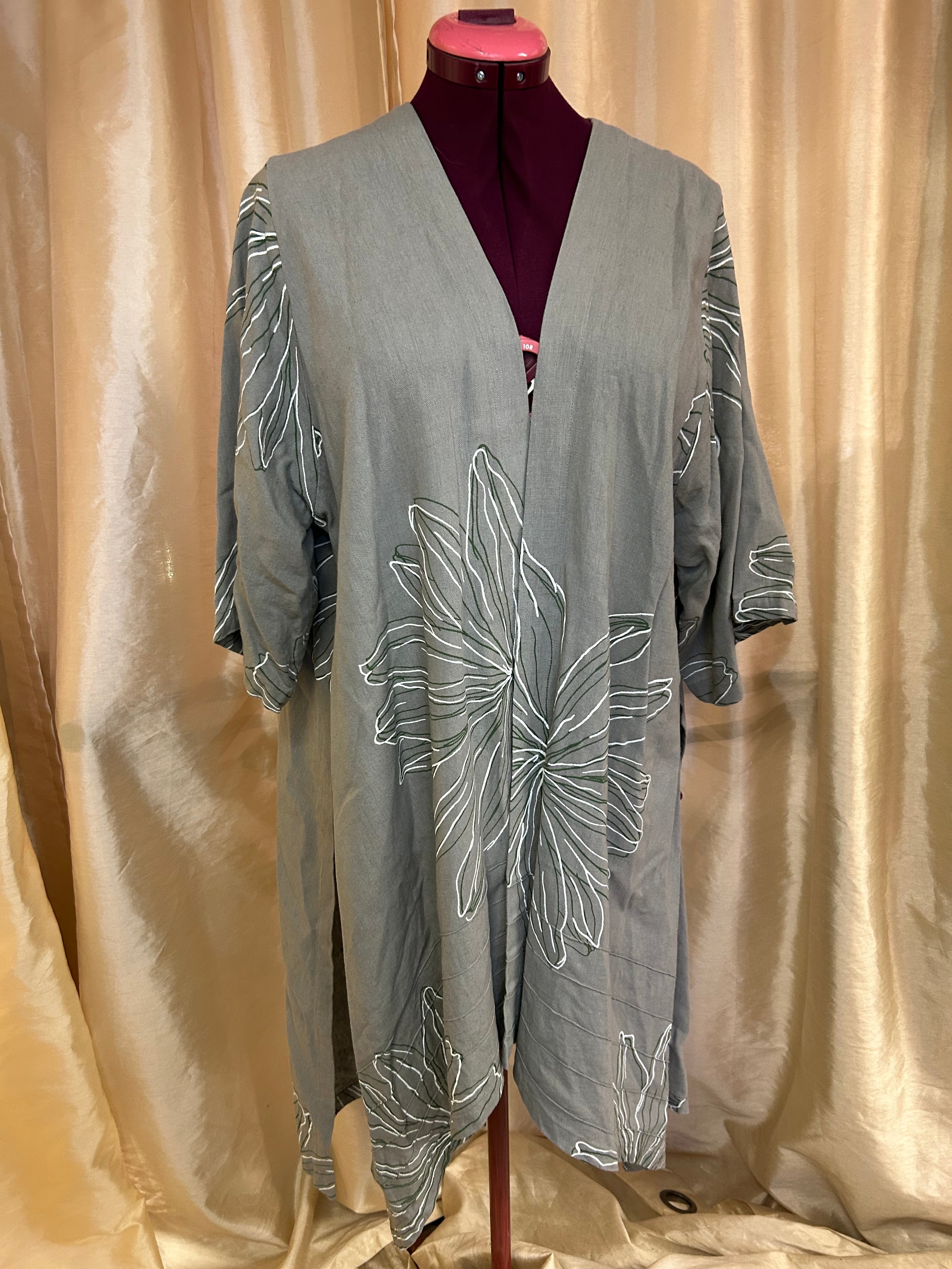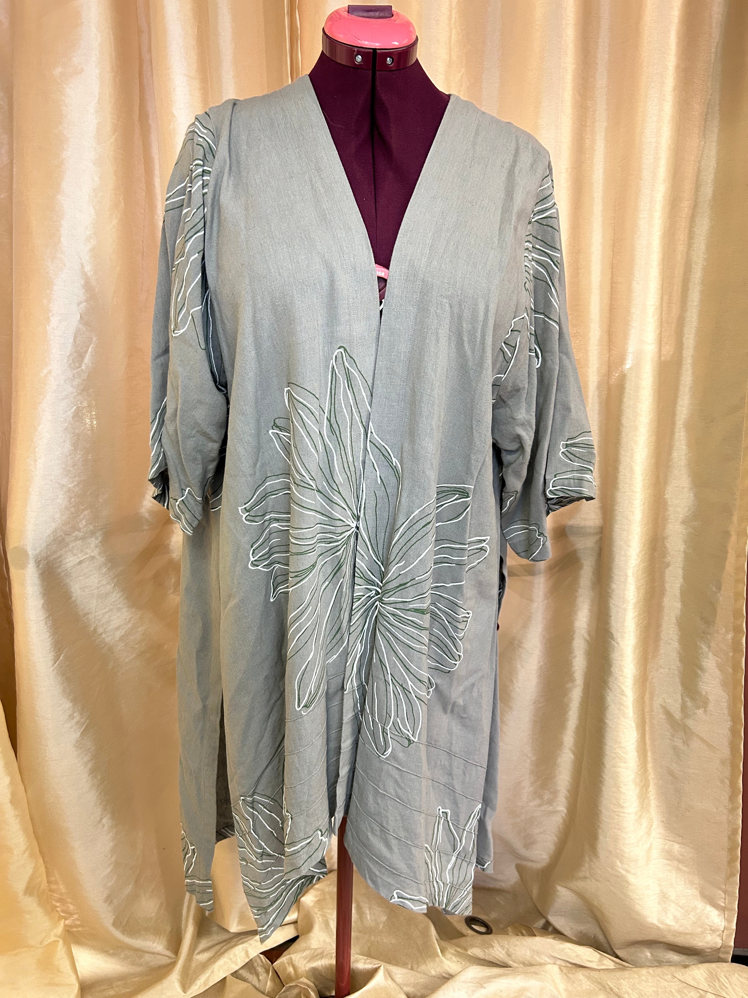 Ladies Open Front Jacket, Side Slits, Embroidered Floral Design, M/L