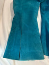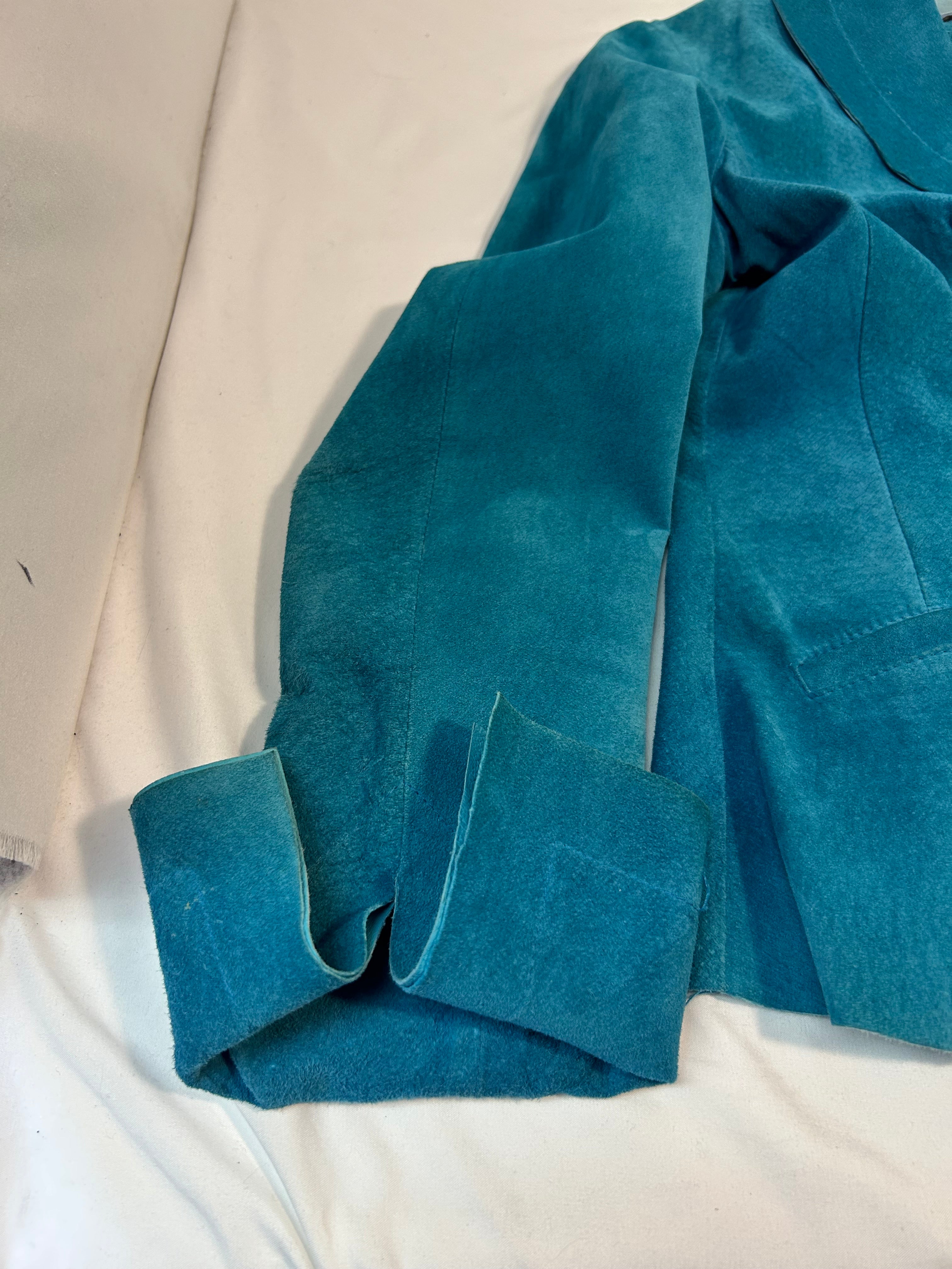 Long Bell Sleeve Suede Crop Jacket, Aqua, Size XS,