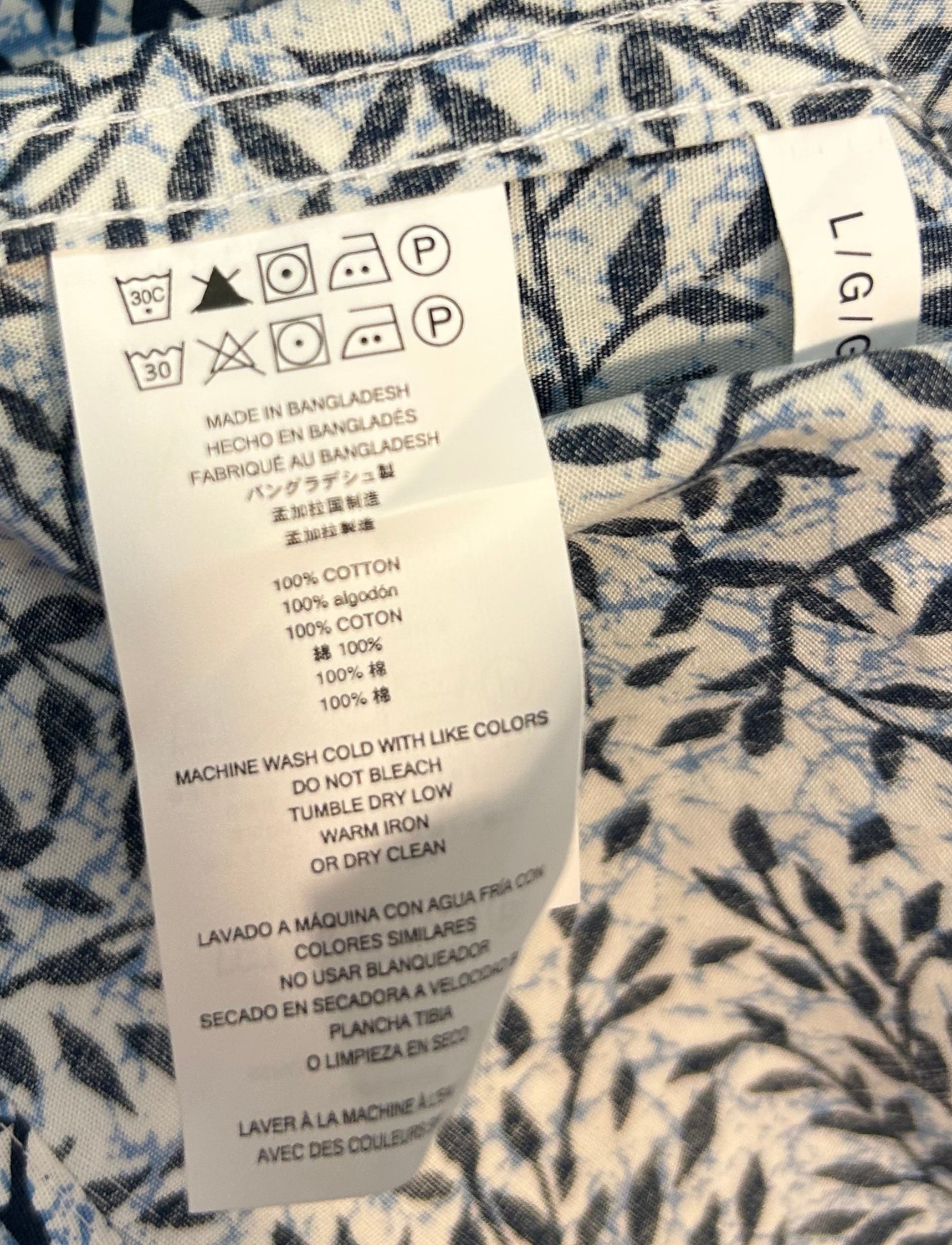 Long Sleeve Blouse Cape Blue, Large, 100% Cotton