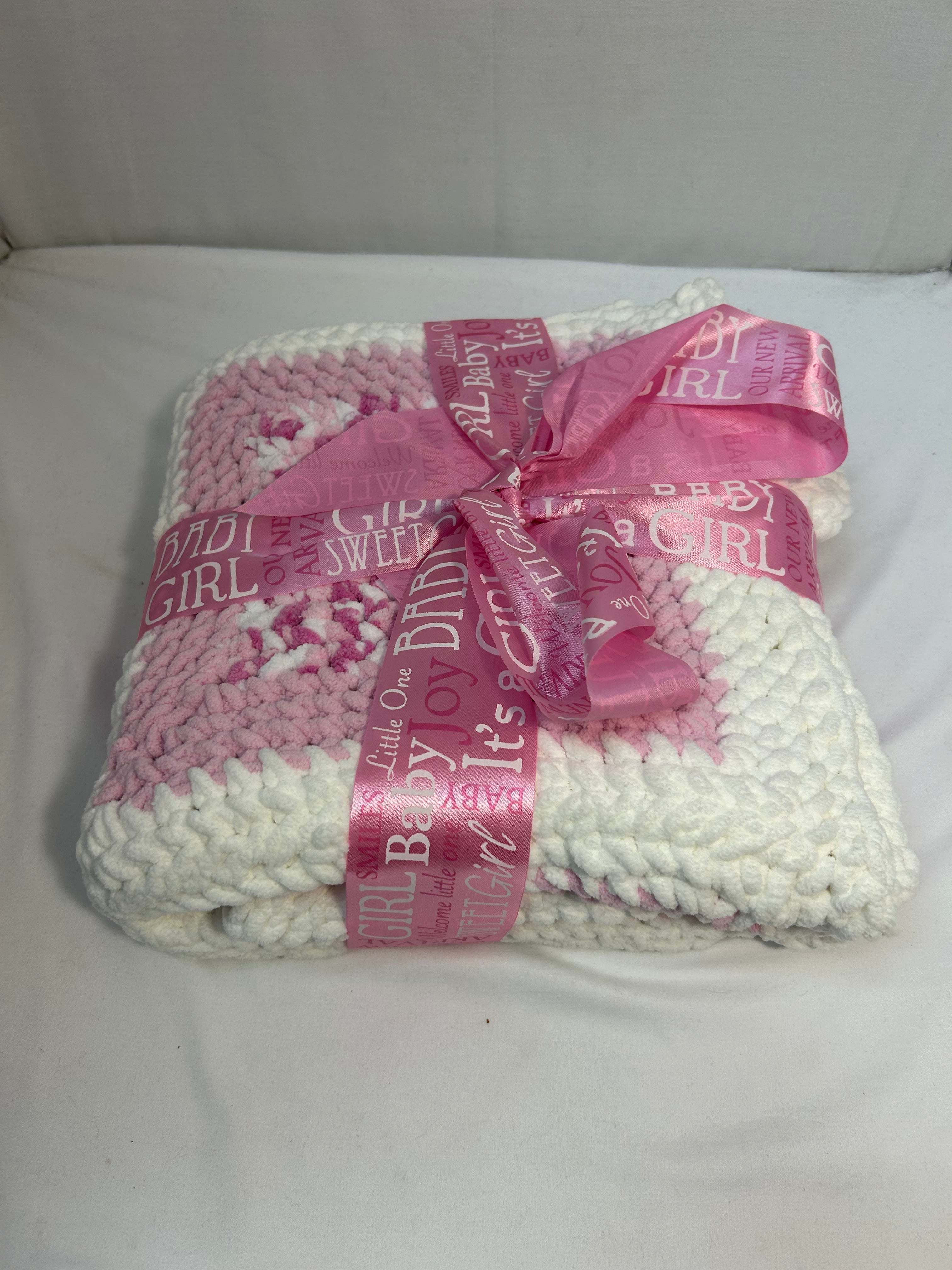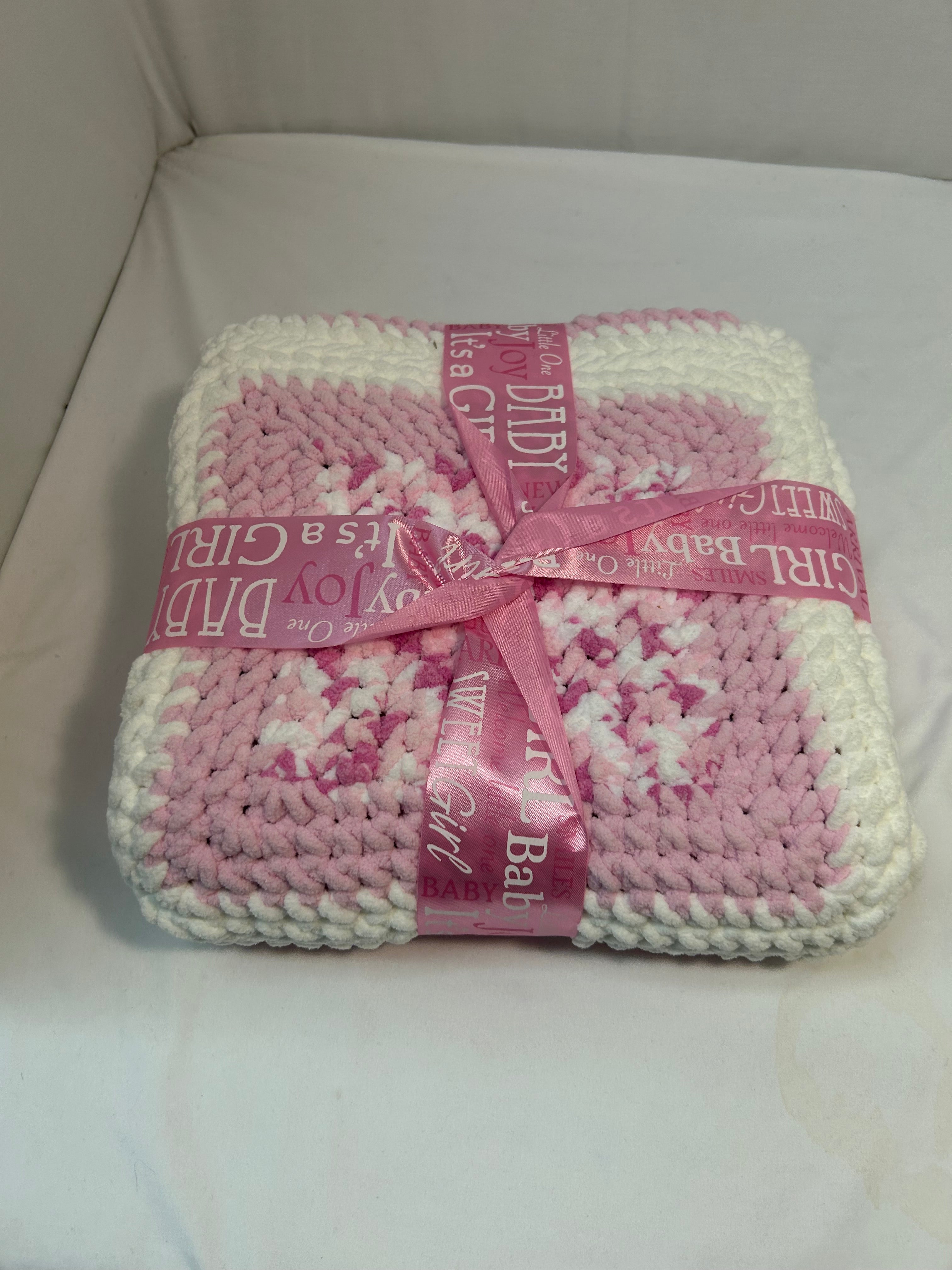 Girl's Baby Quilt, Pink/White Crochet Patches, 44" x 40", NEW