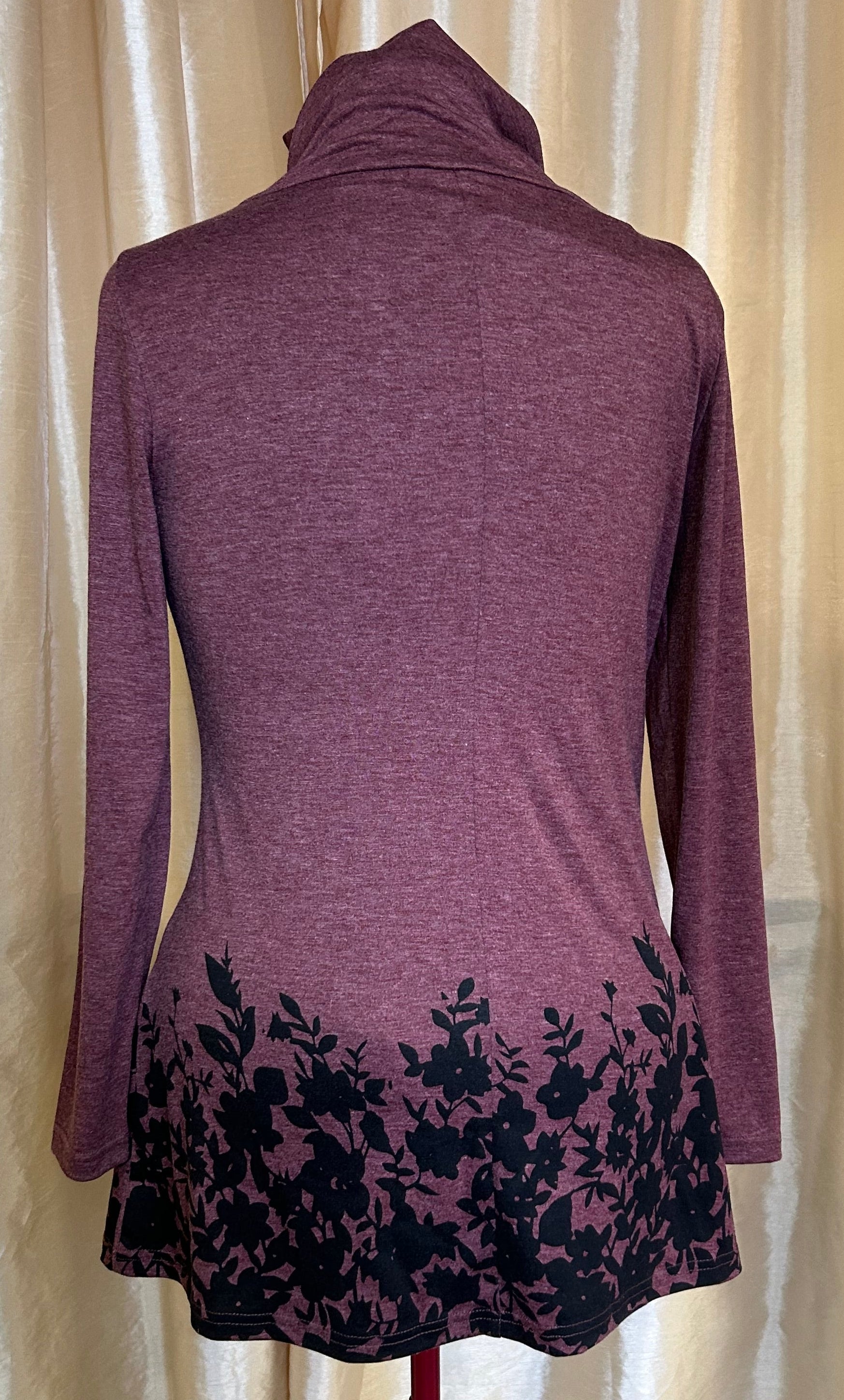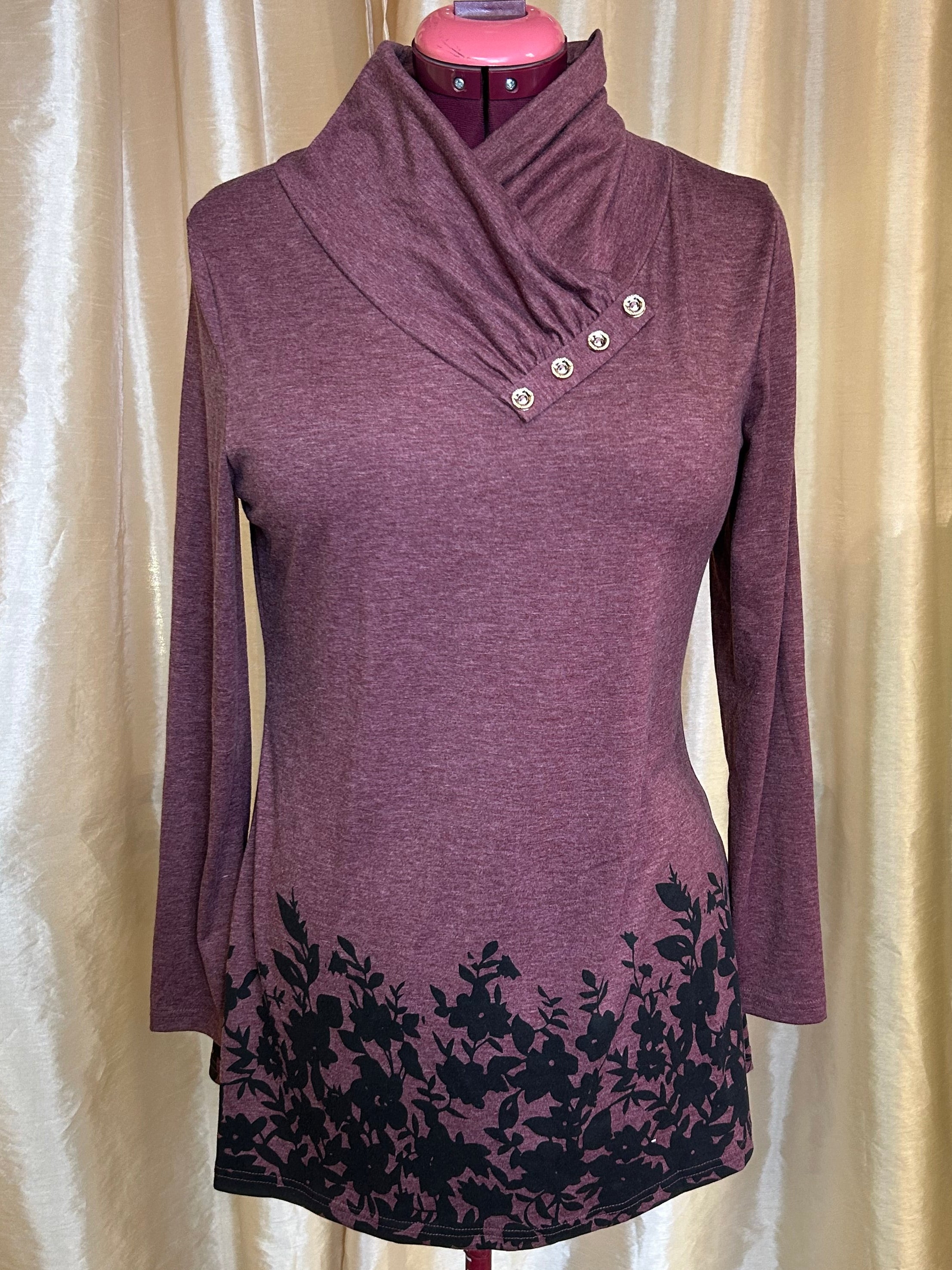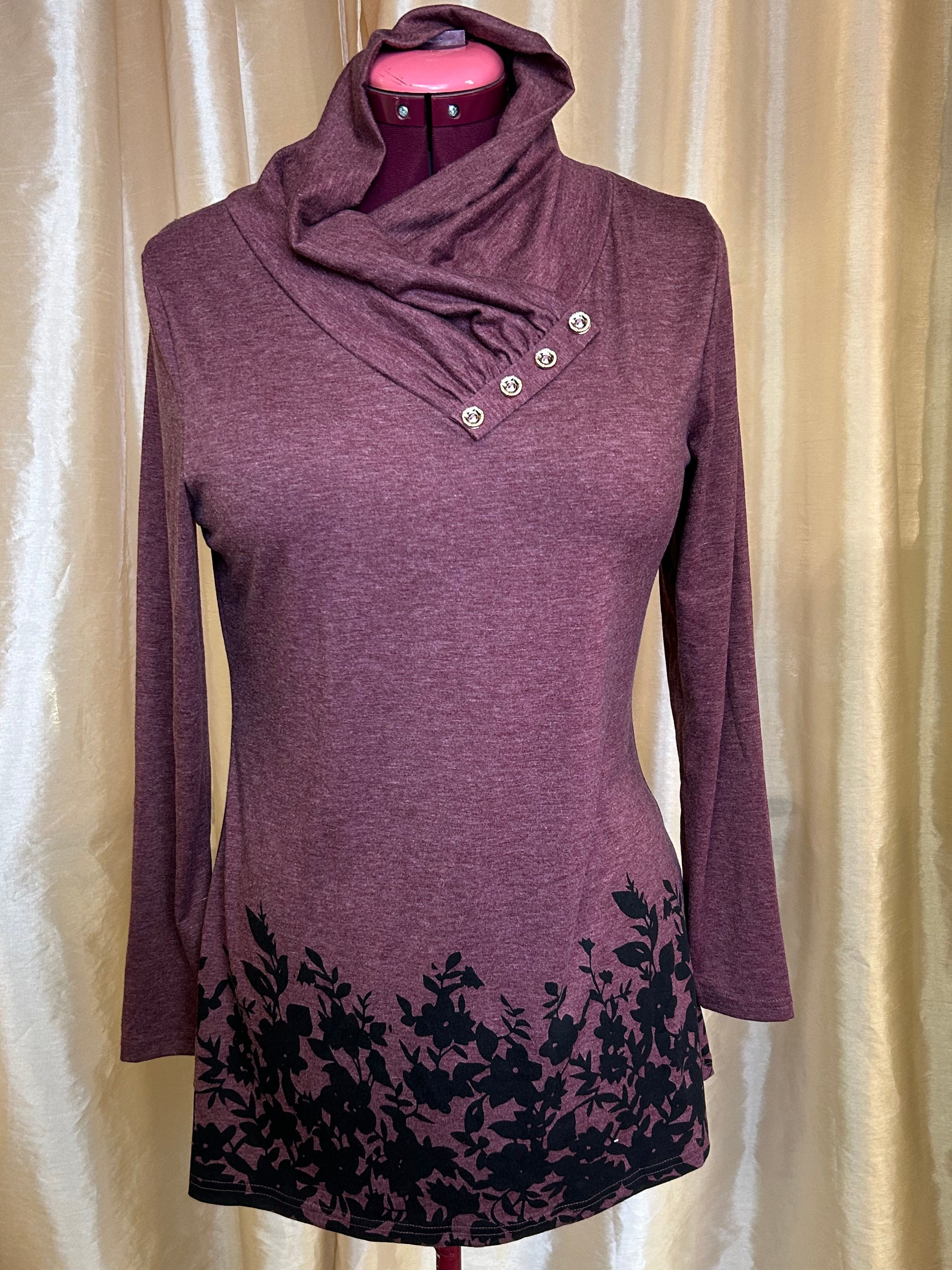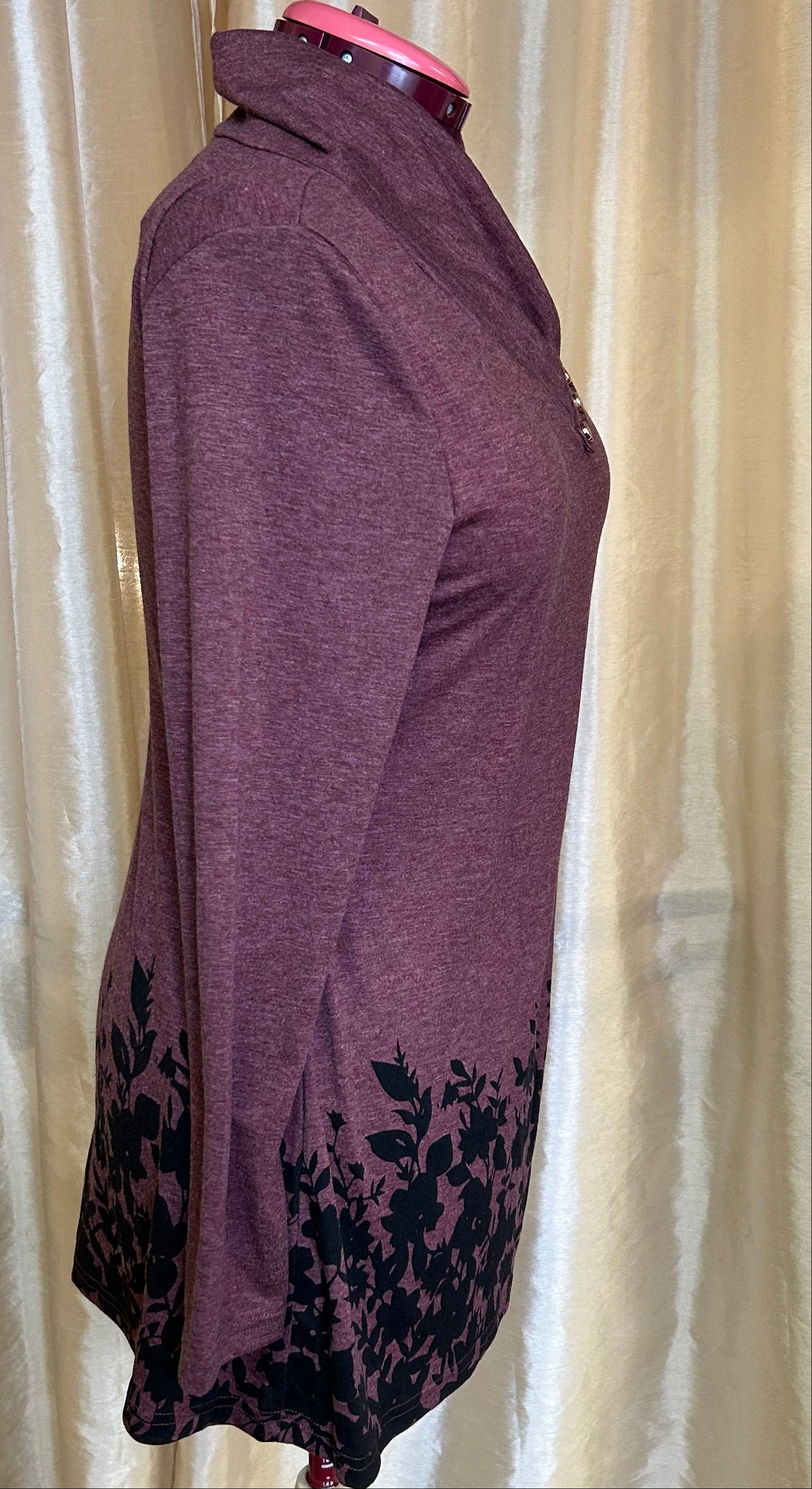 Ladies Long Sleeve Tunic Top, Plum/Black, Size Large