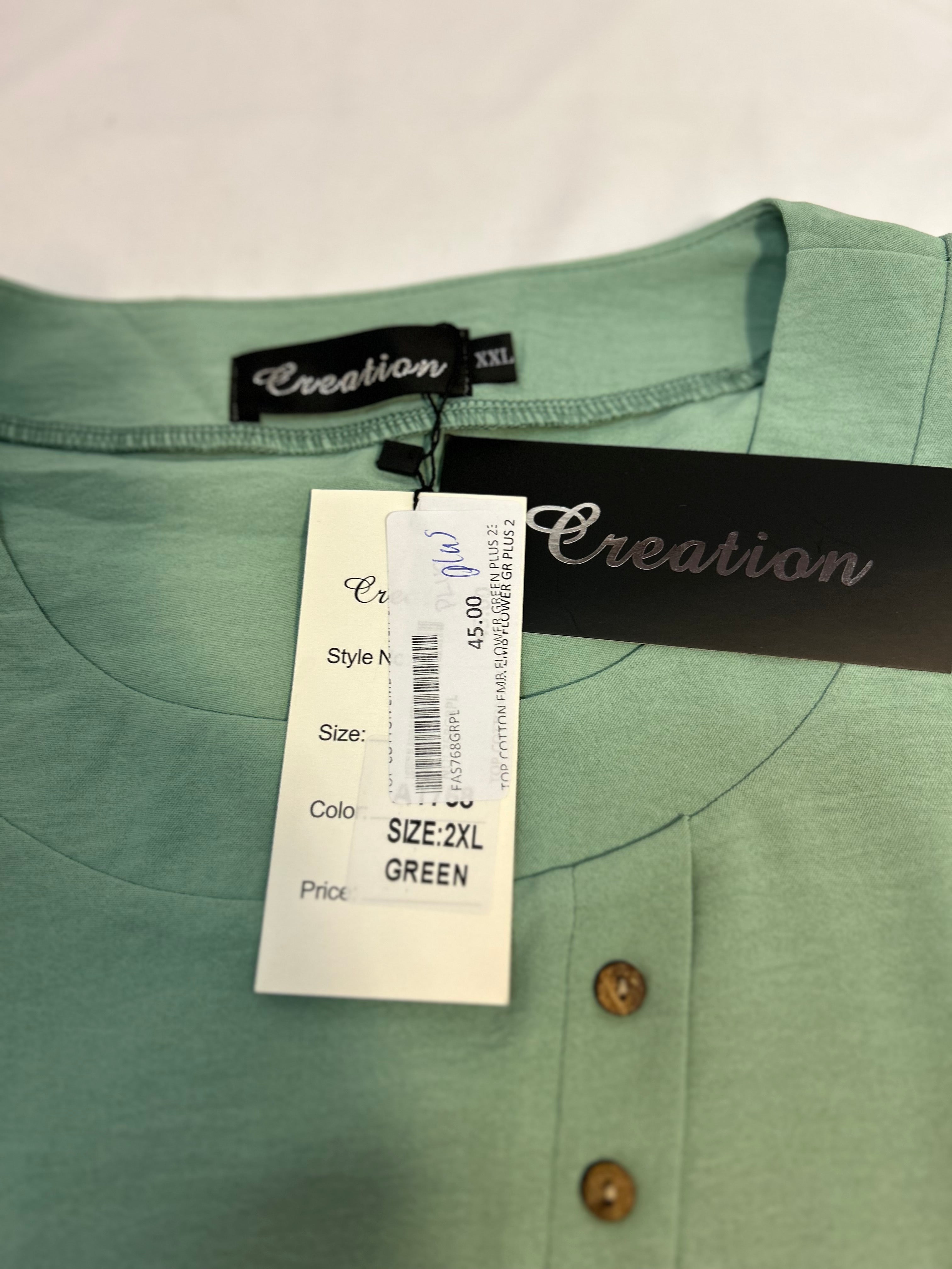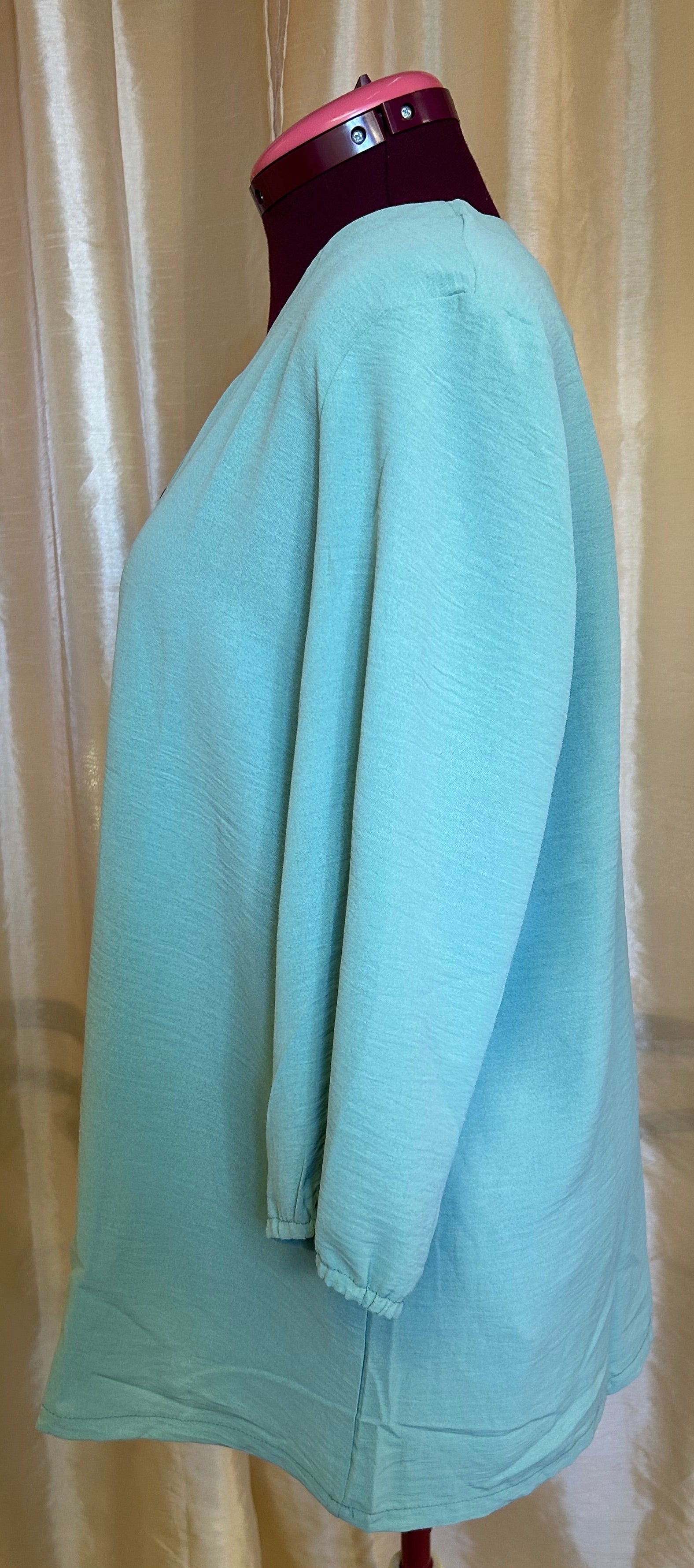 Long Sleeve Blouse With Floral Embroidery Trim, Green, 2XL, NEW