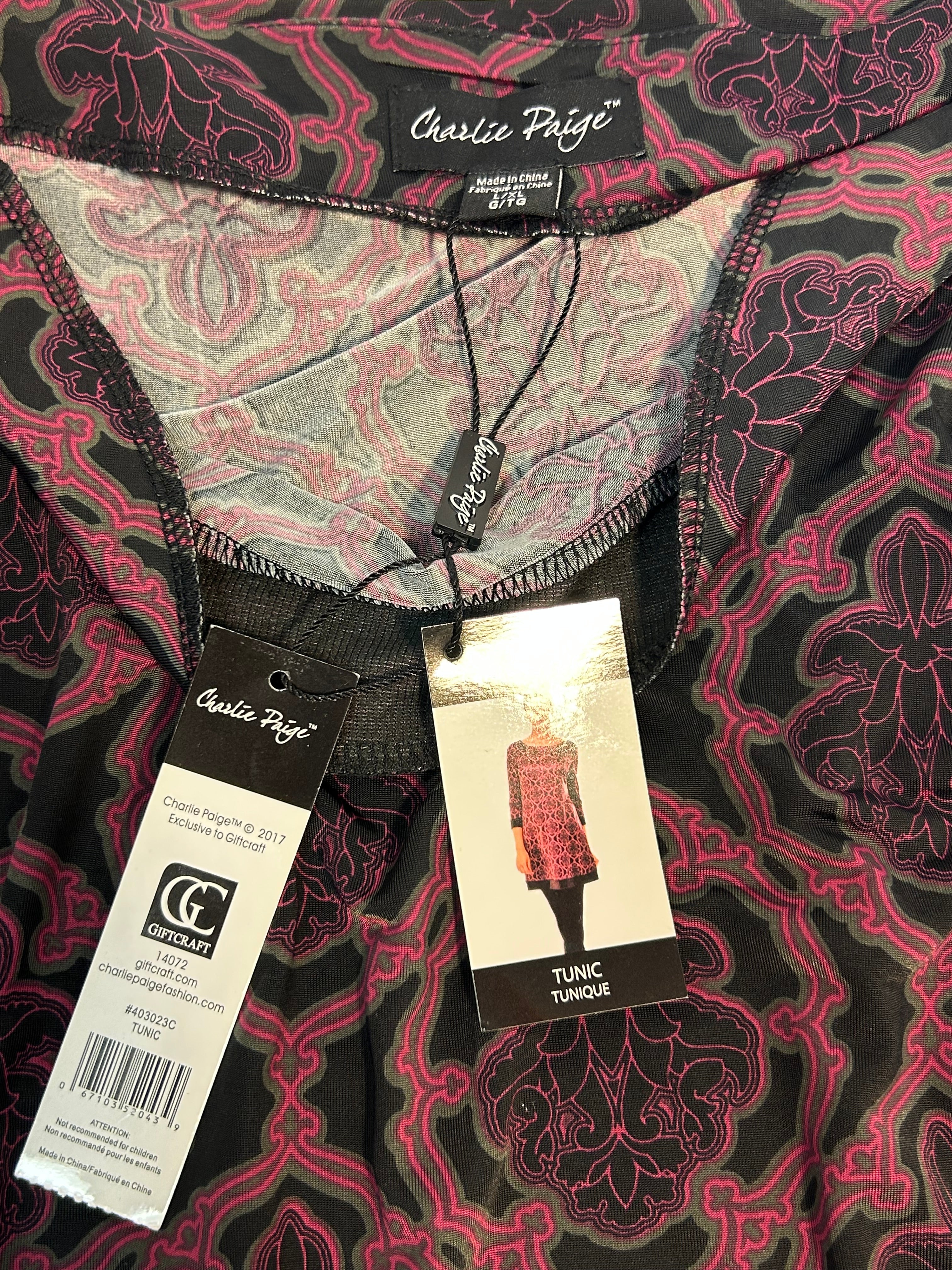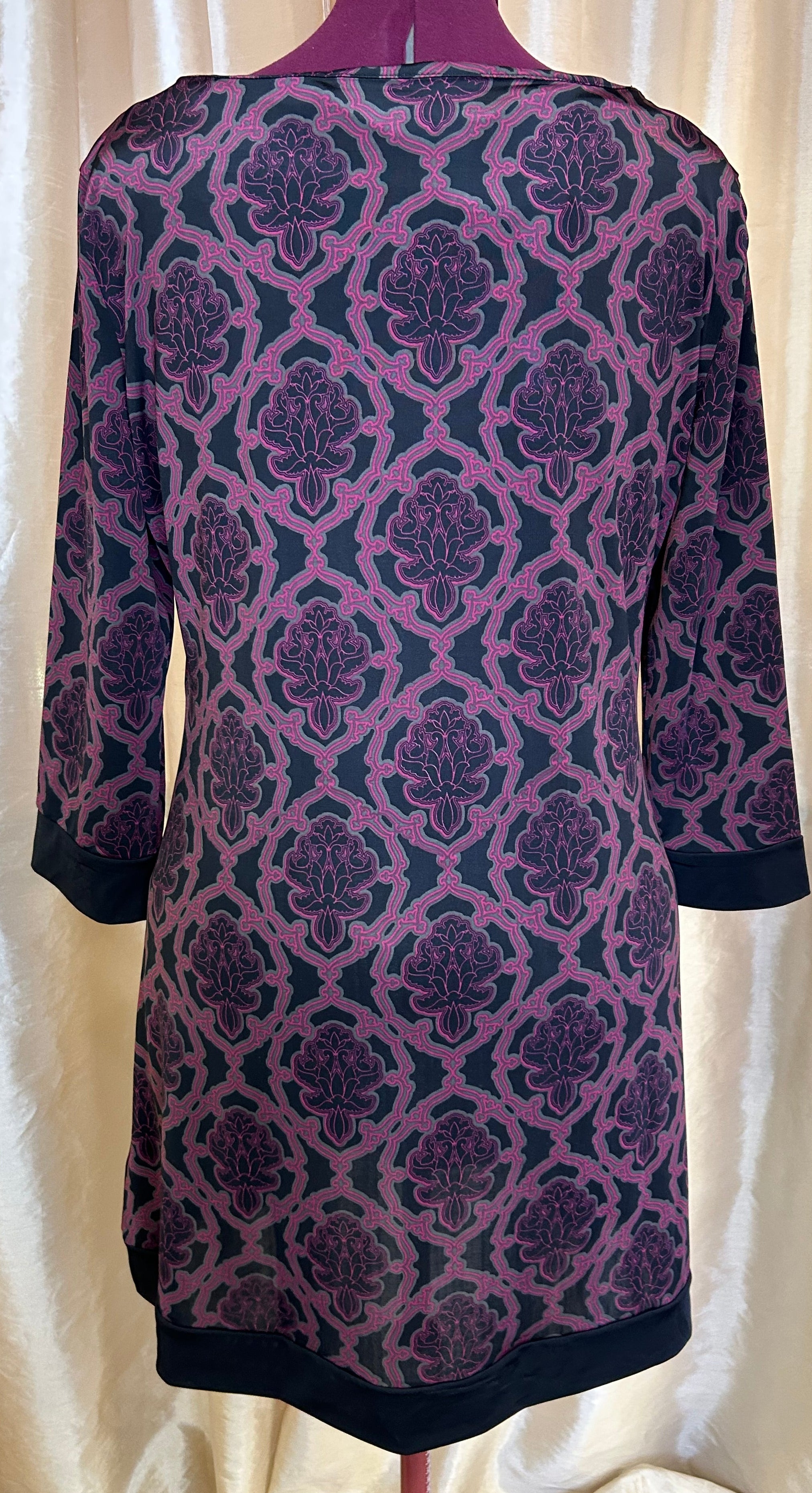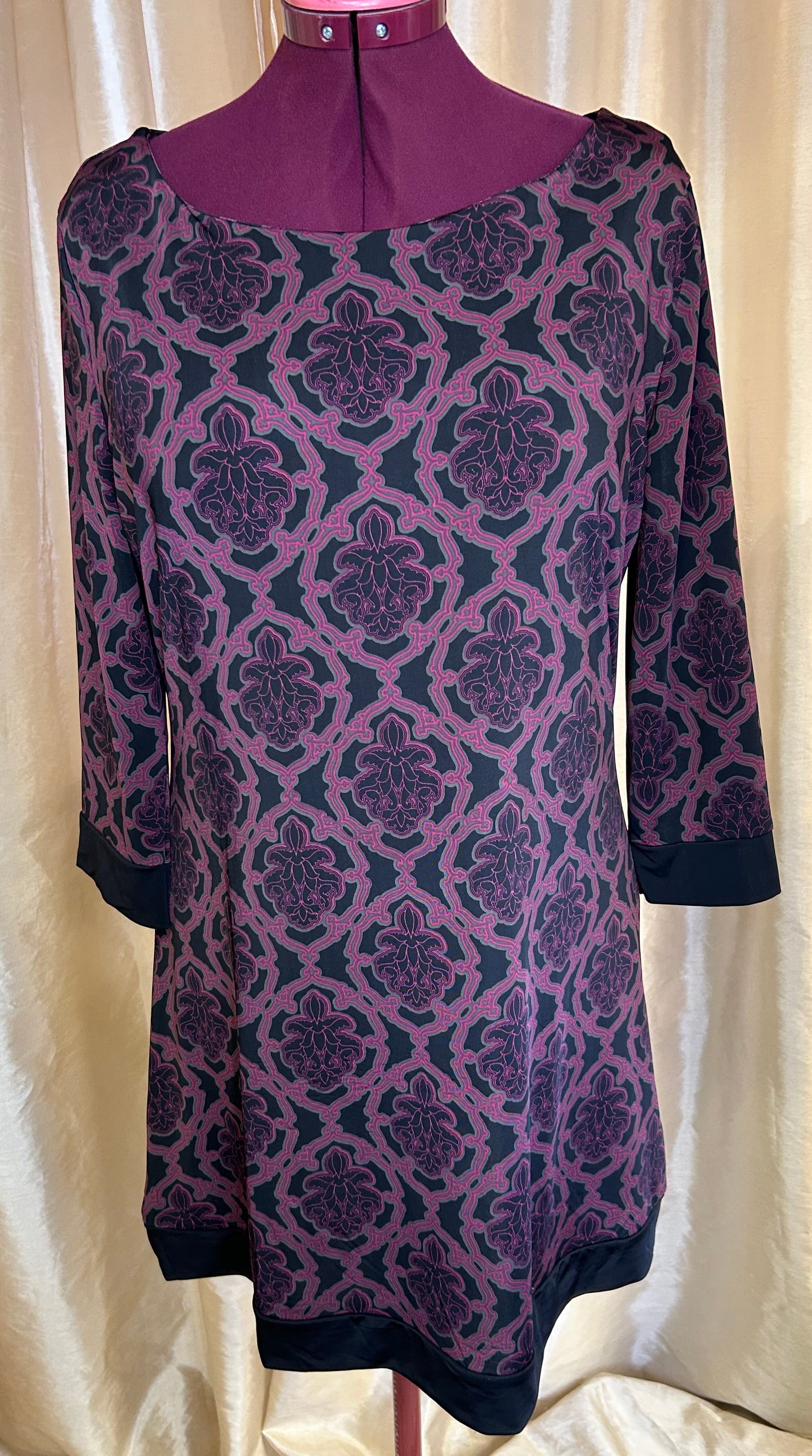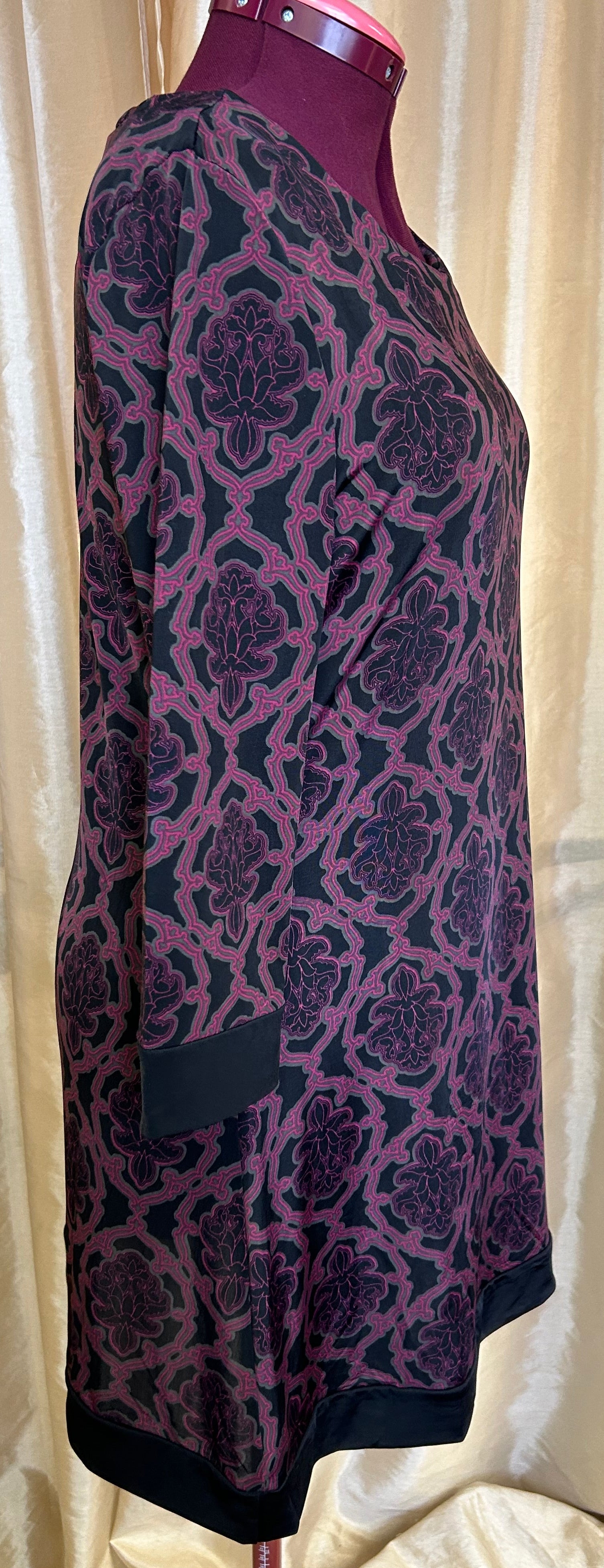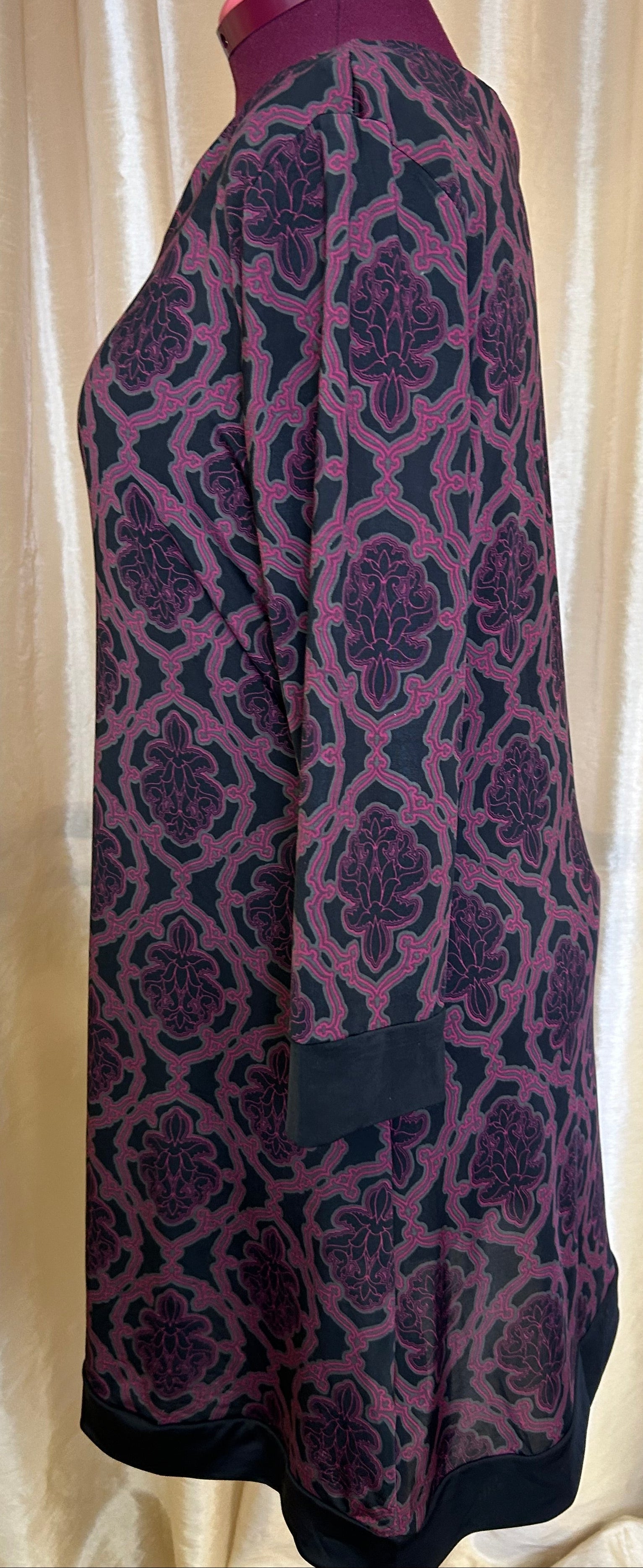 Long Sleeve Tunic Dress, Burgundy/Black, XL, NEW