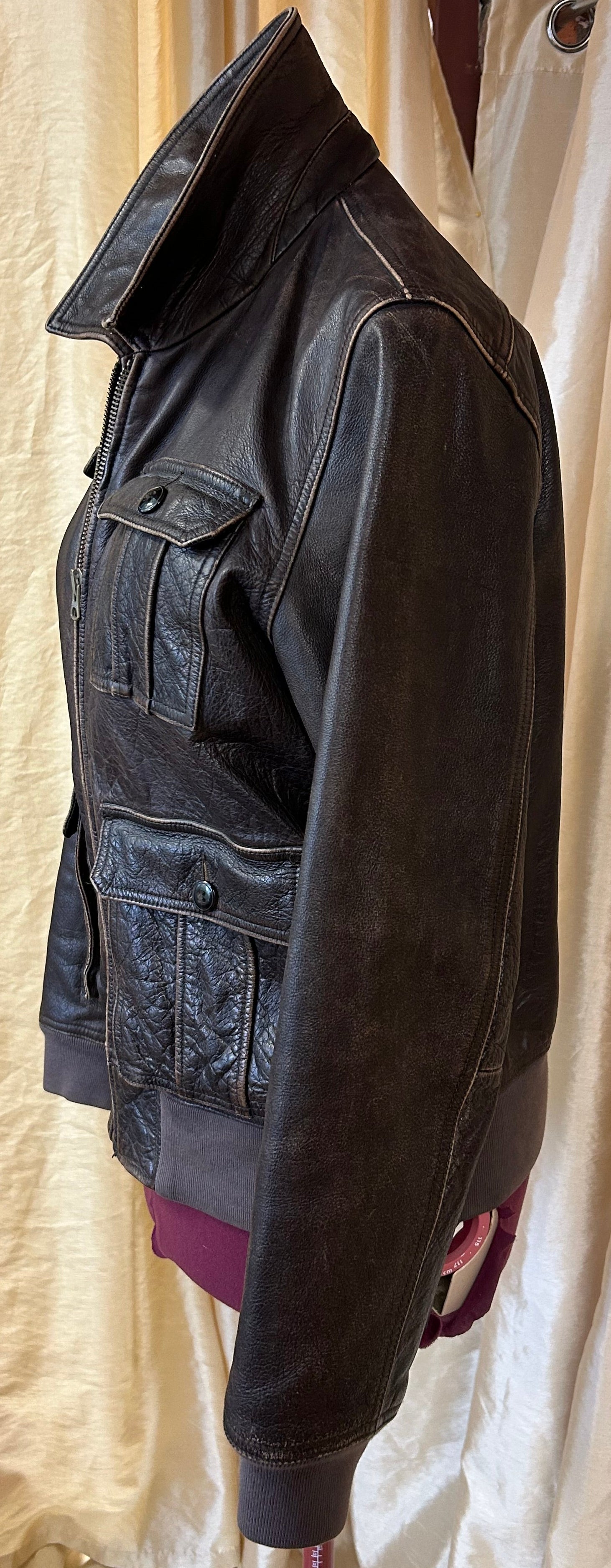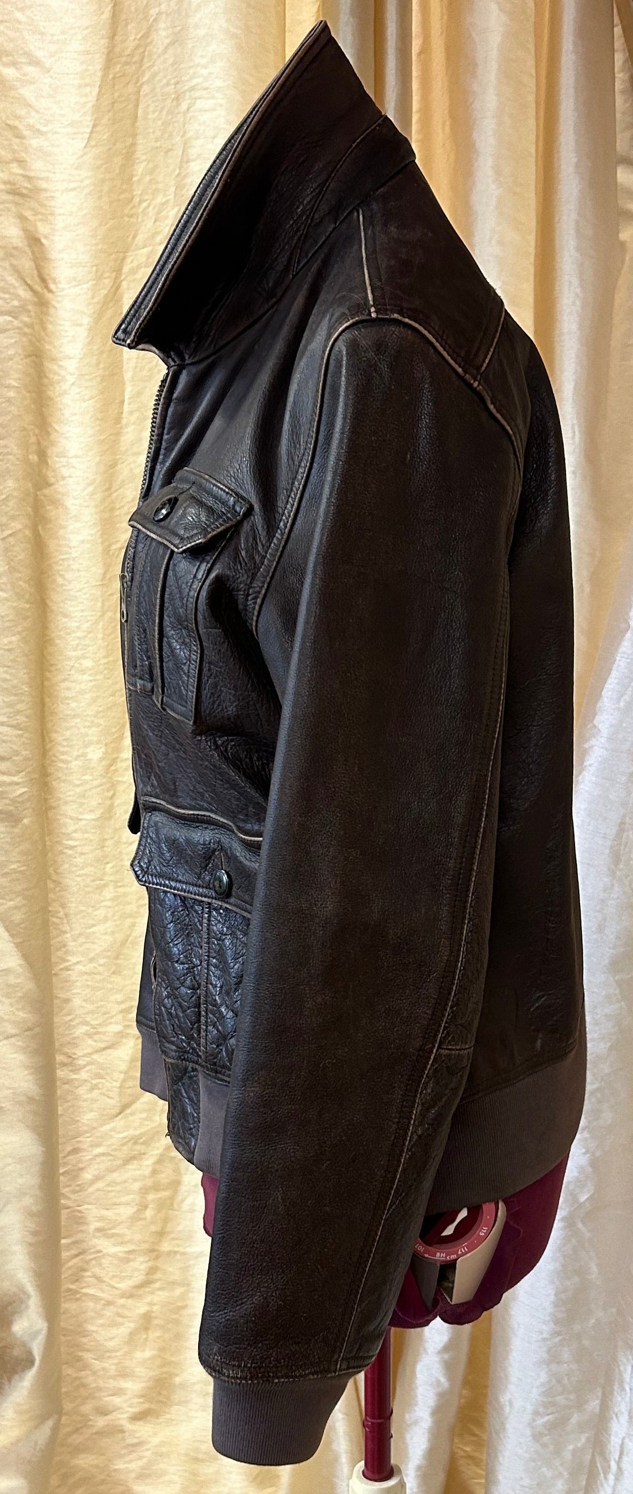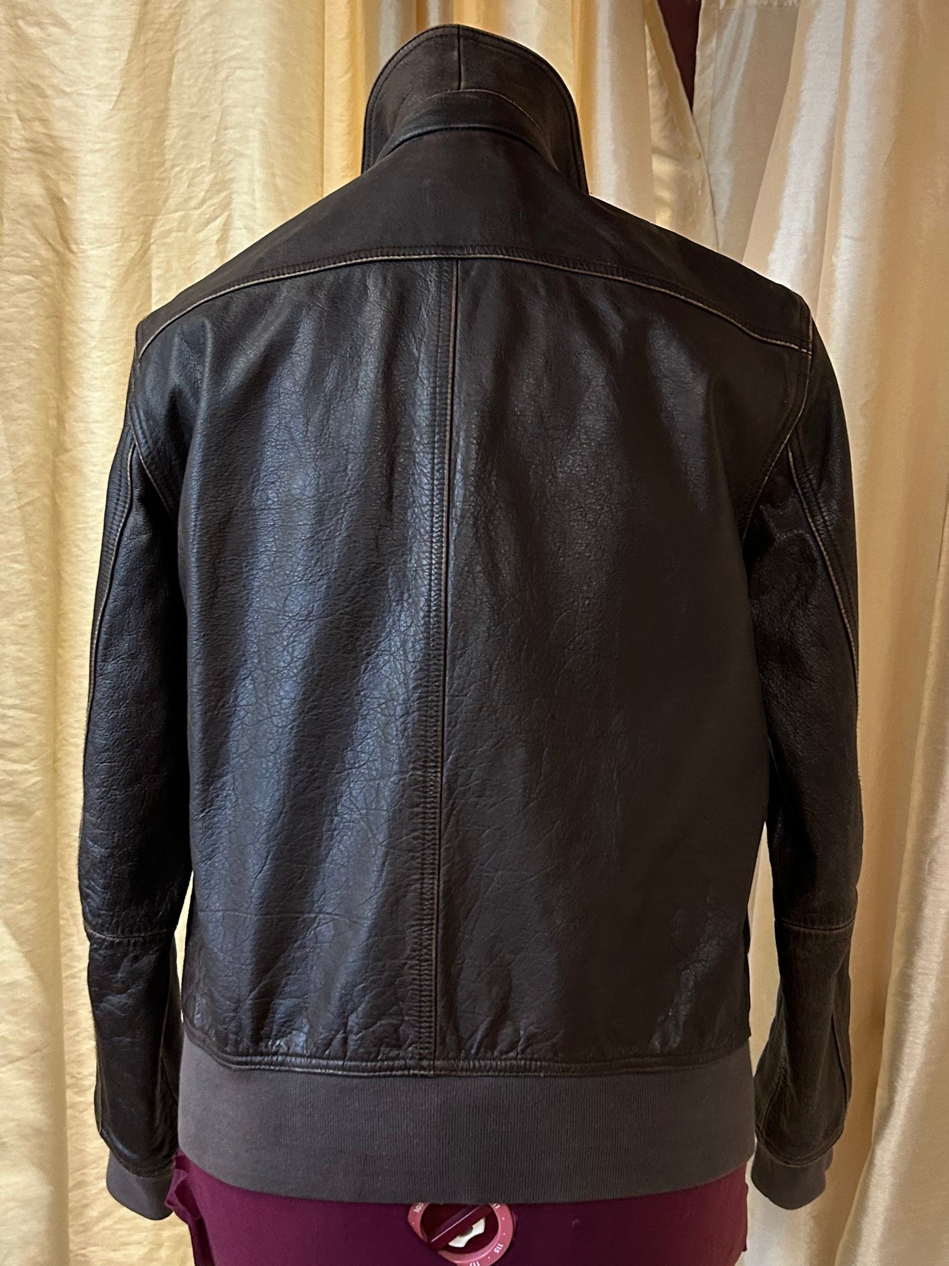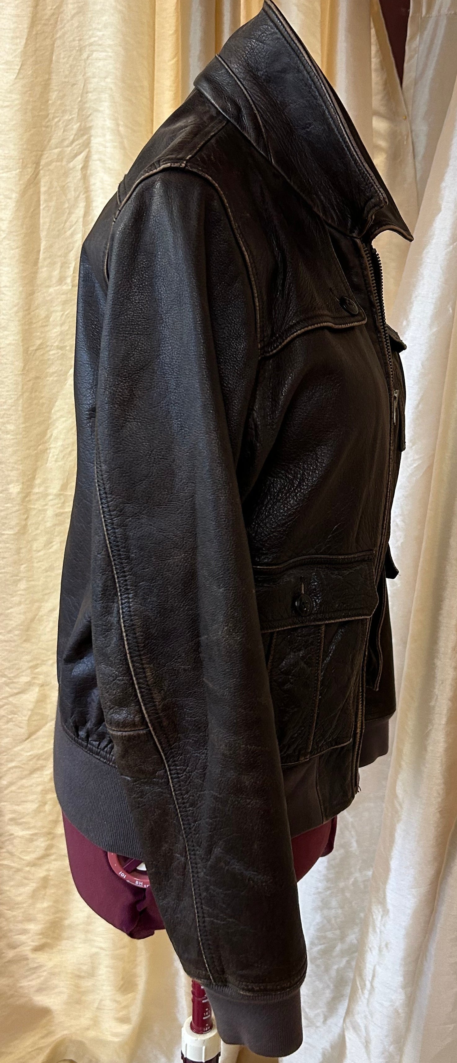 Men's Leather Bomber Jacket, Brown, Size Medium