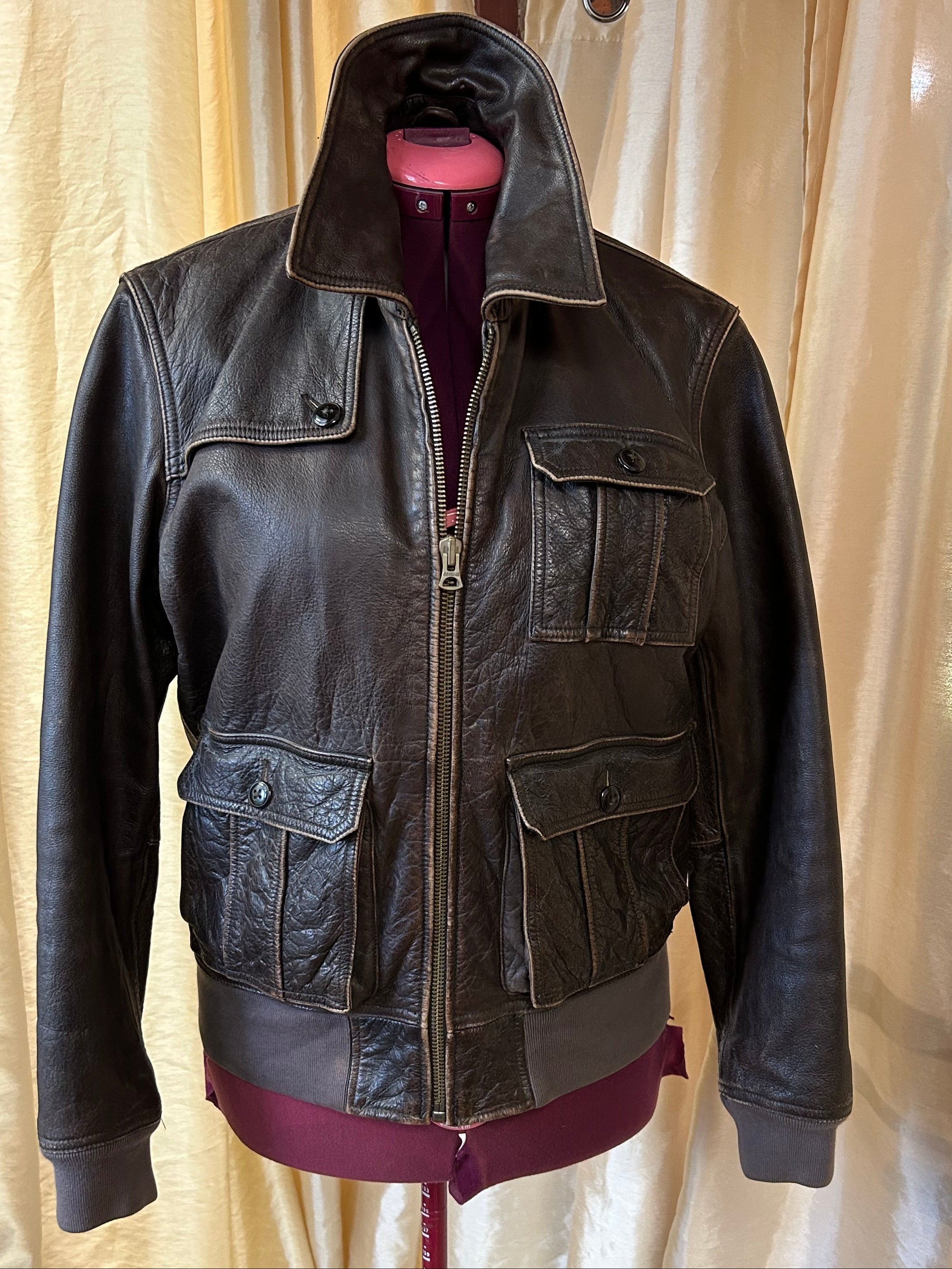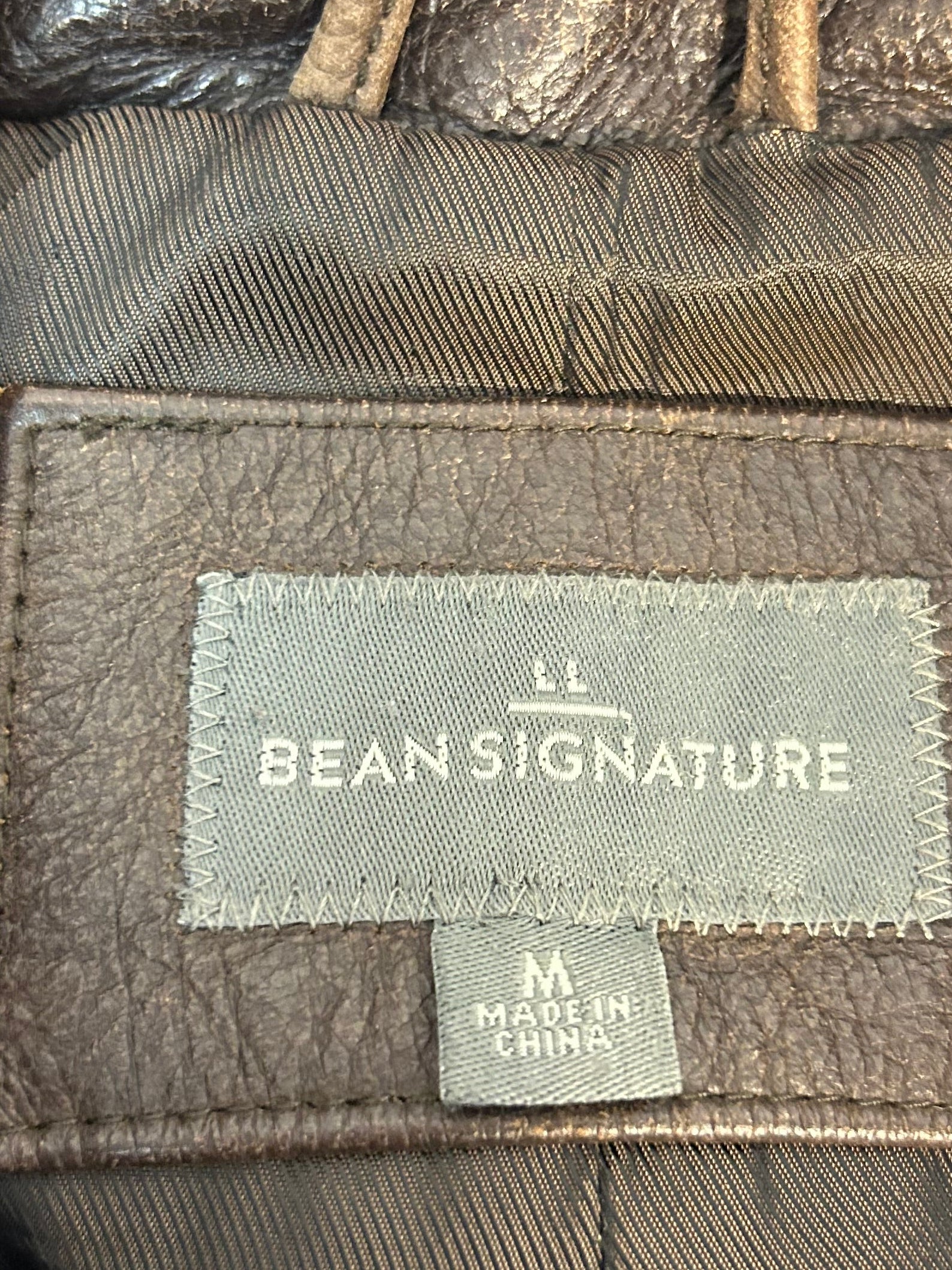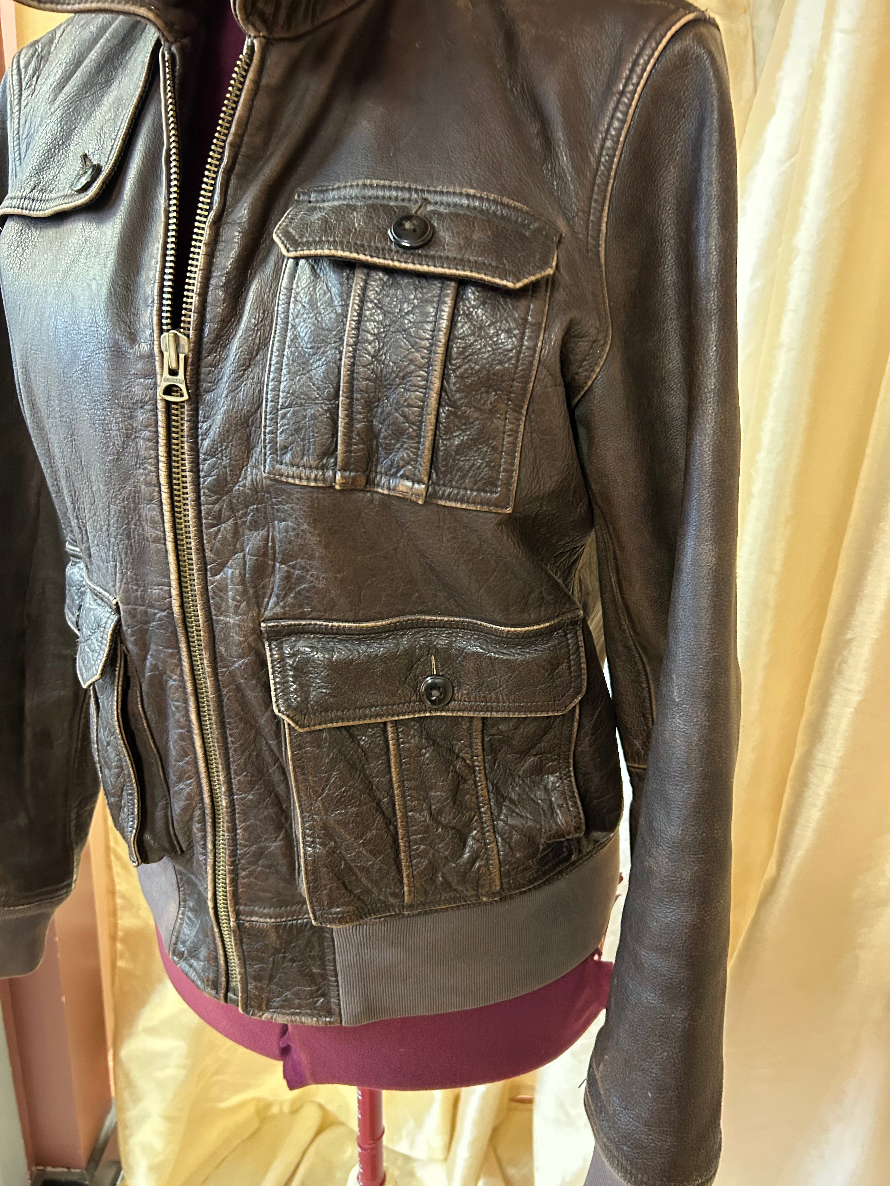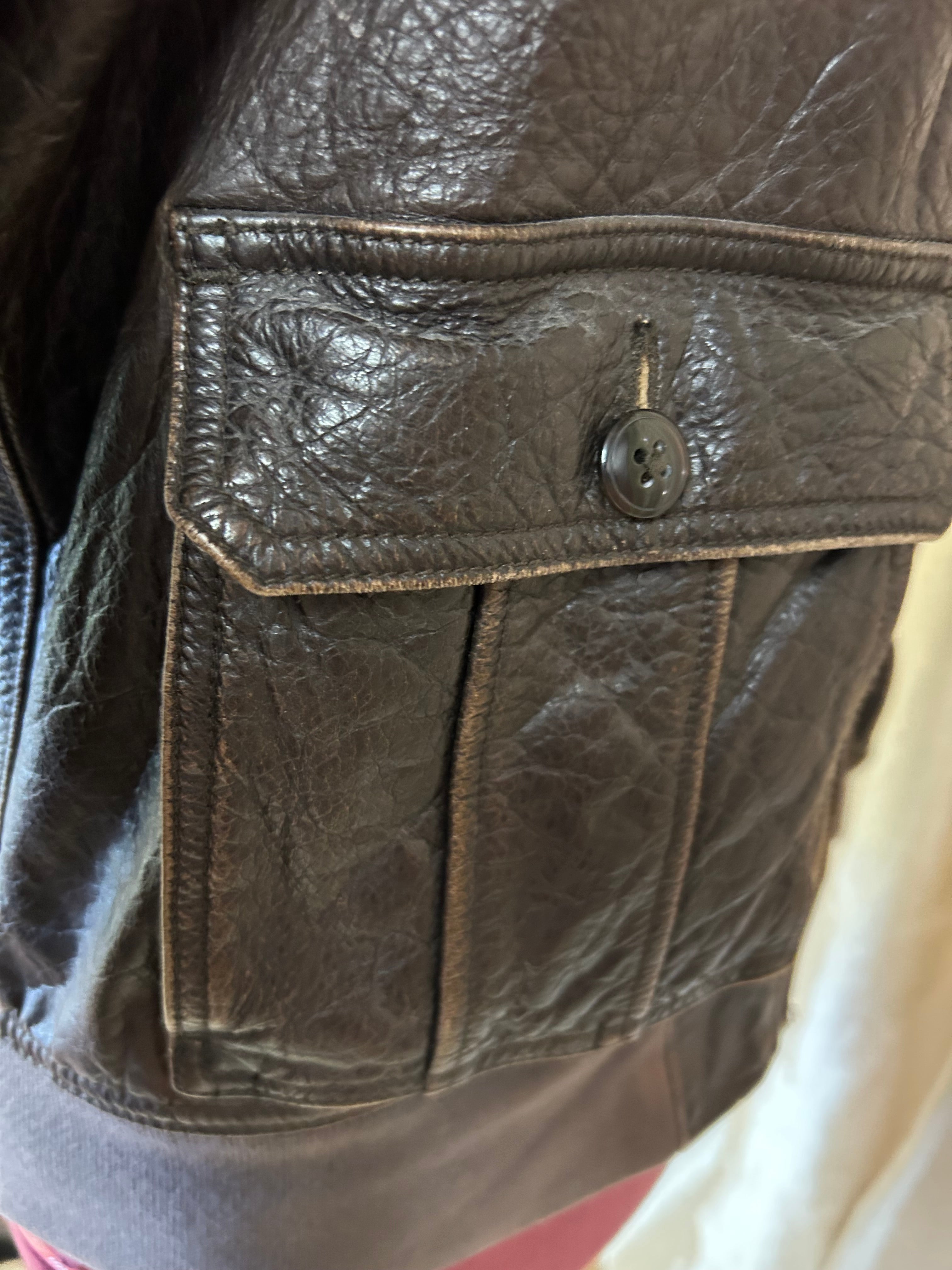 Men's Leather Bomber Jacket, Brown, Size Medium
