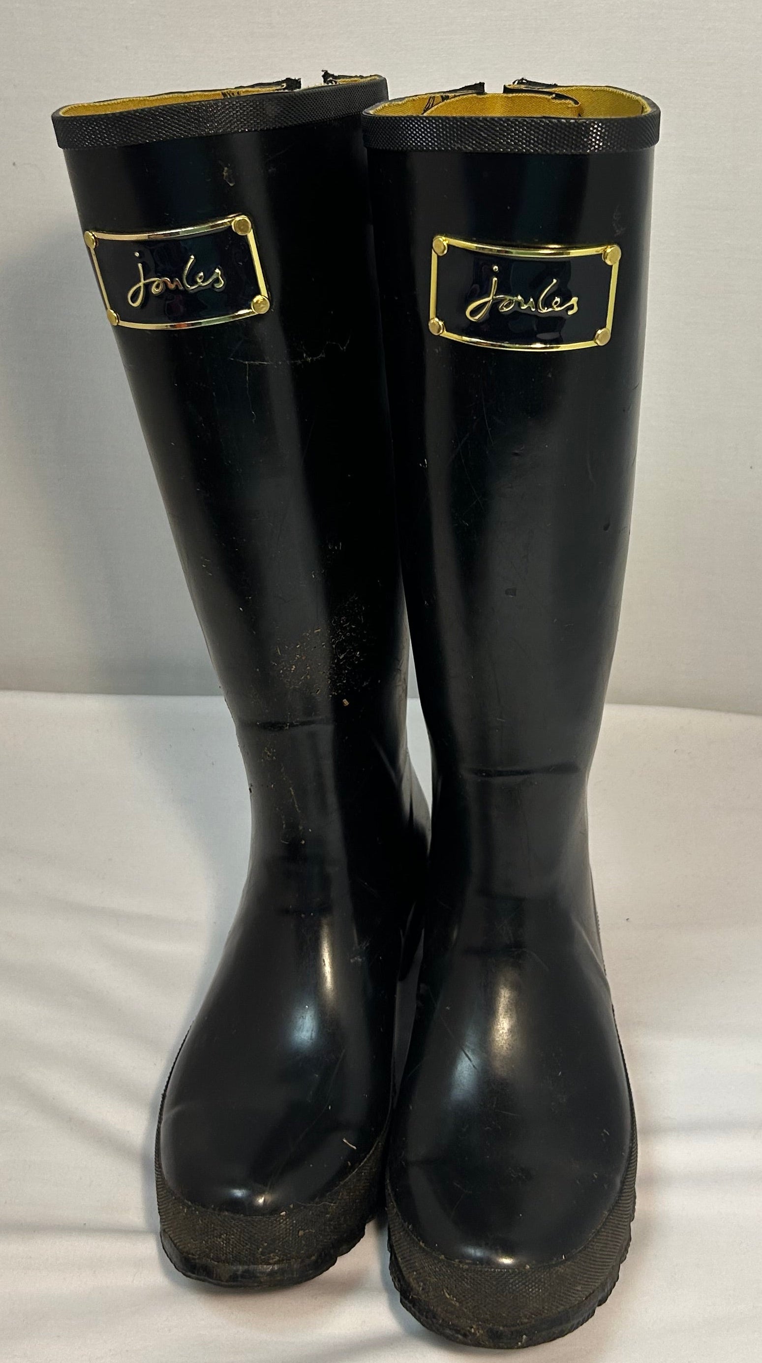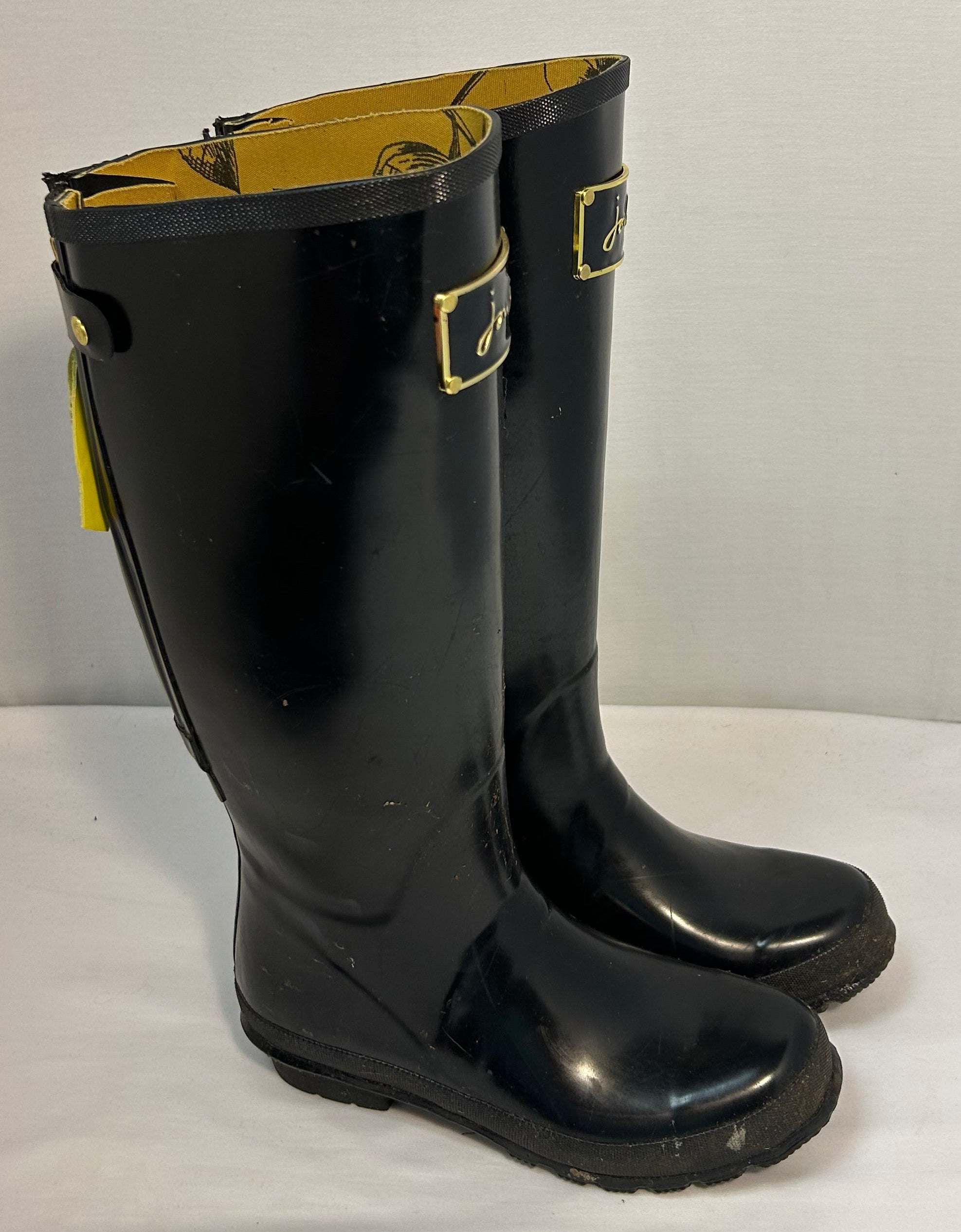 Ladies Knee High Rubber Boots, Black, Size 8, Used Condition
