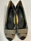 Ladies Open-Toe Pumps, Taupe/Black, 1.5" Heel, Size 38