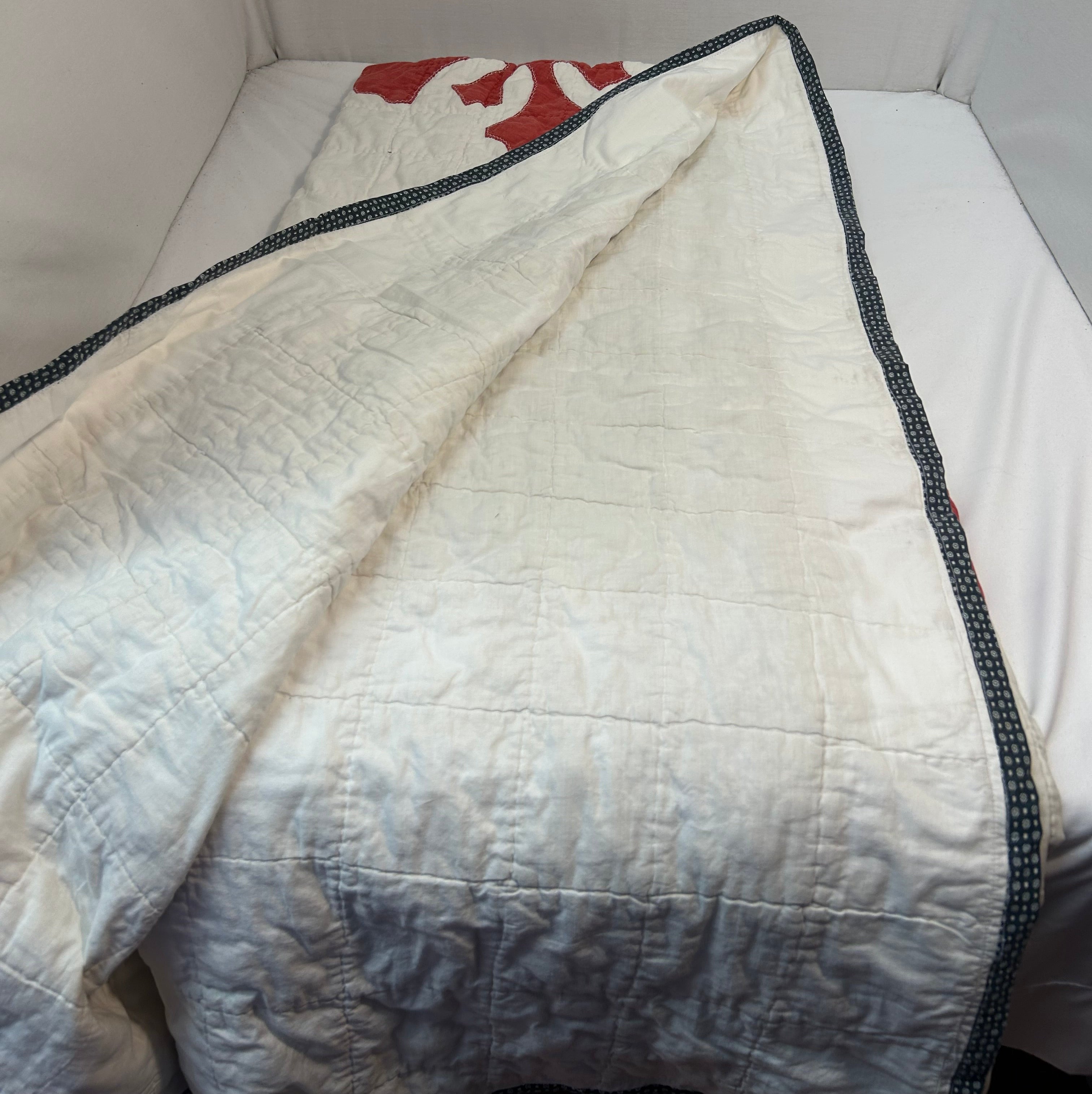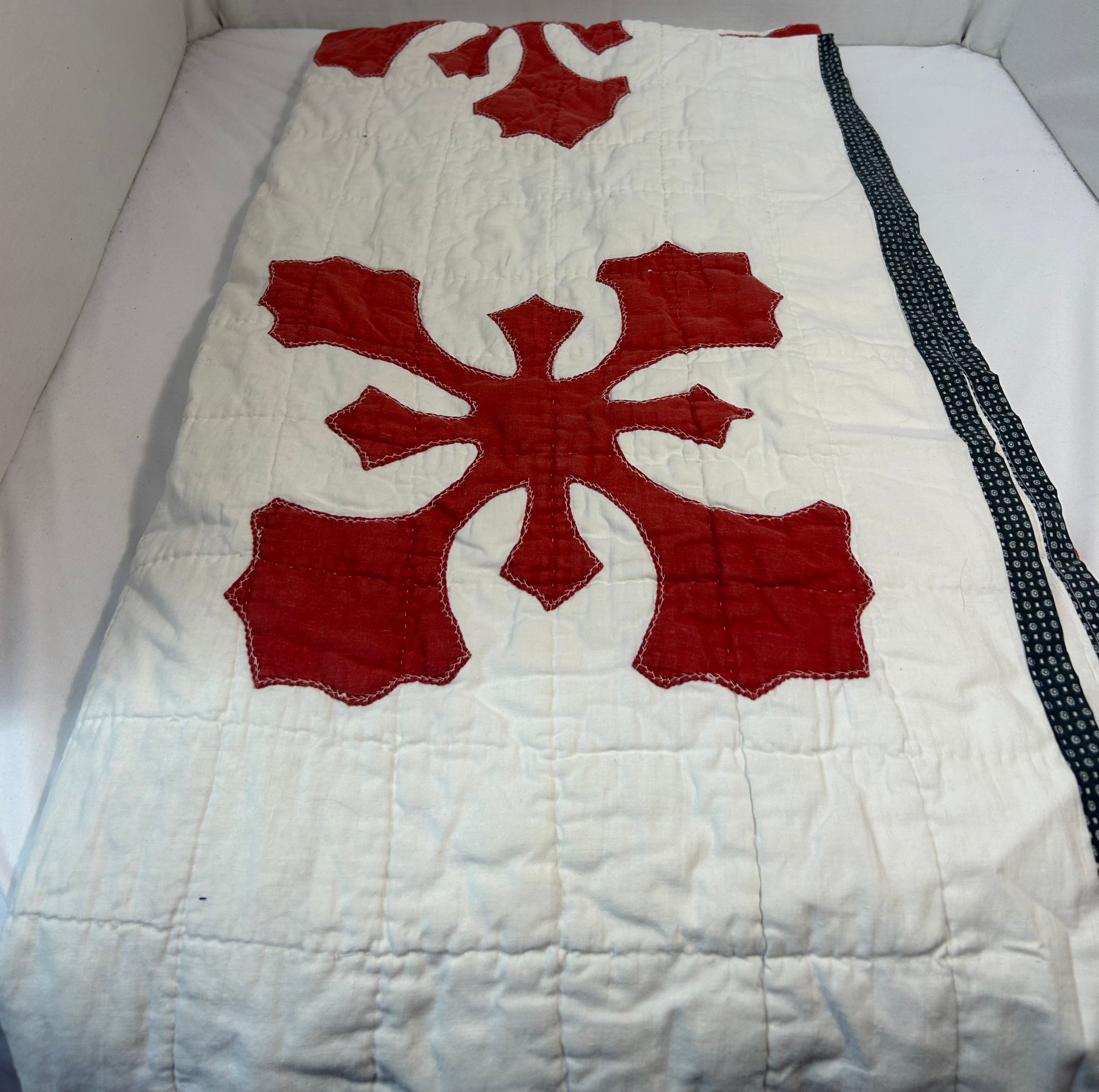 Handmade Quilt, Red/White, Small Stains, 57" x 82"