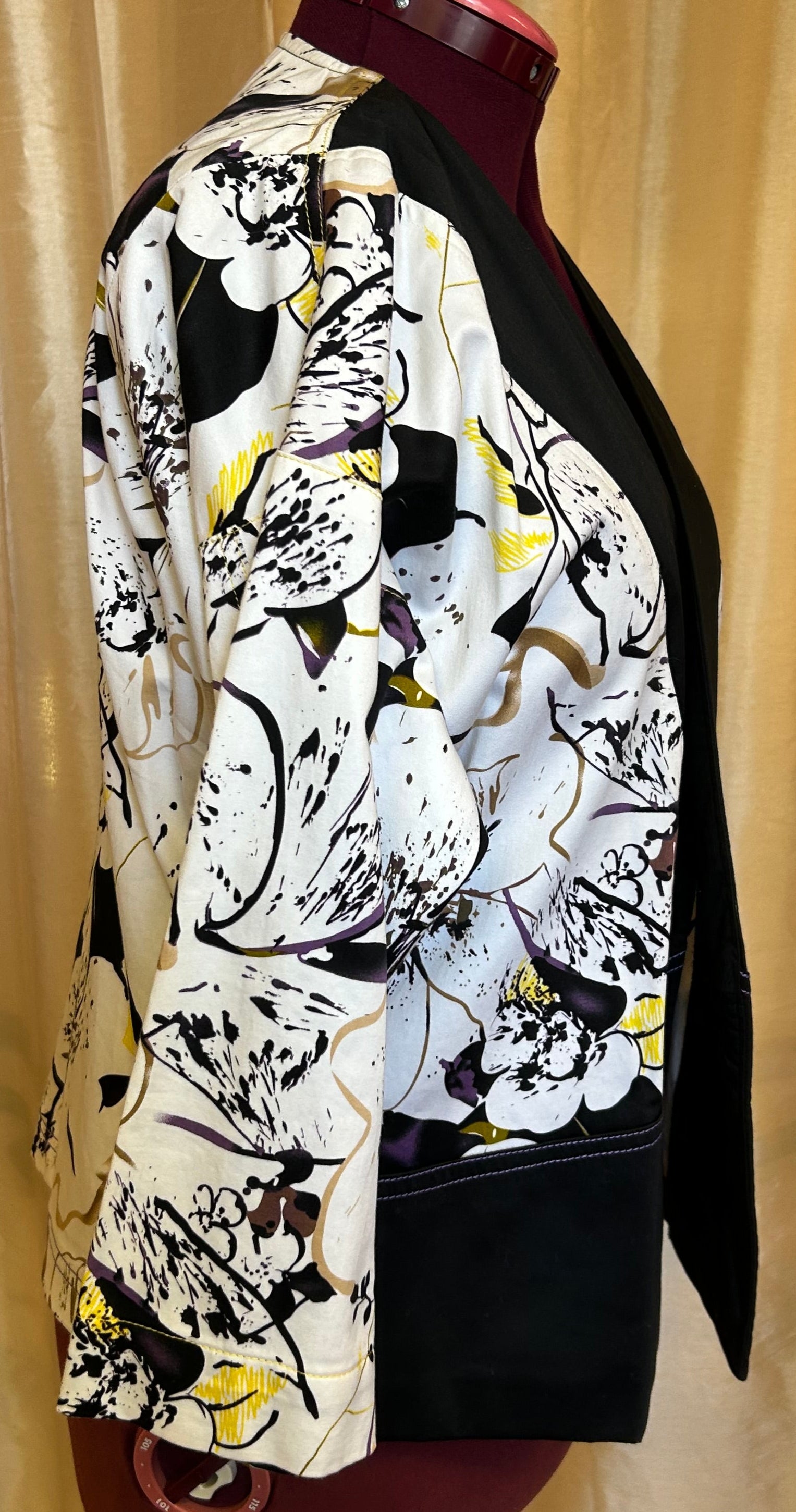 Open Front Long Sleeve Jacket, Black/Beige, Size Large