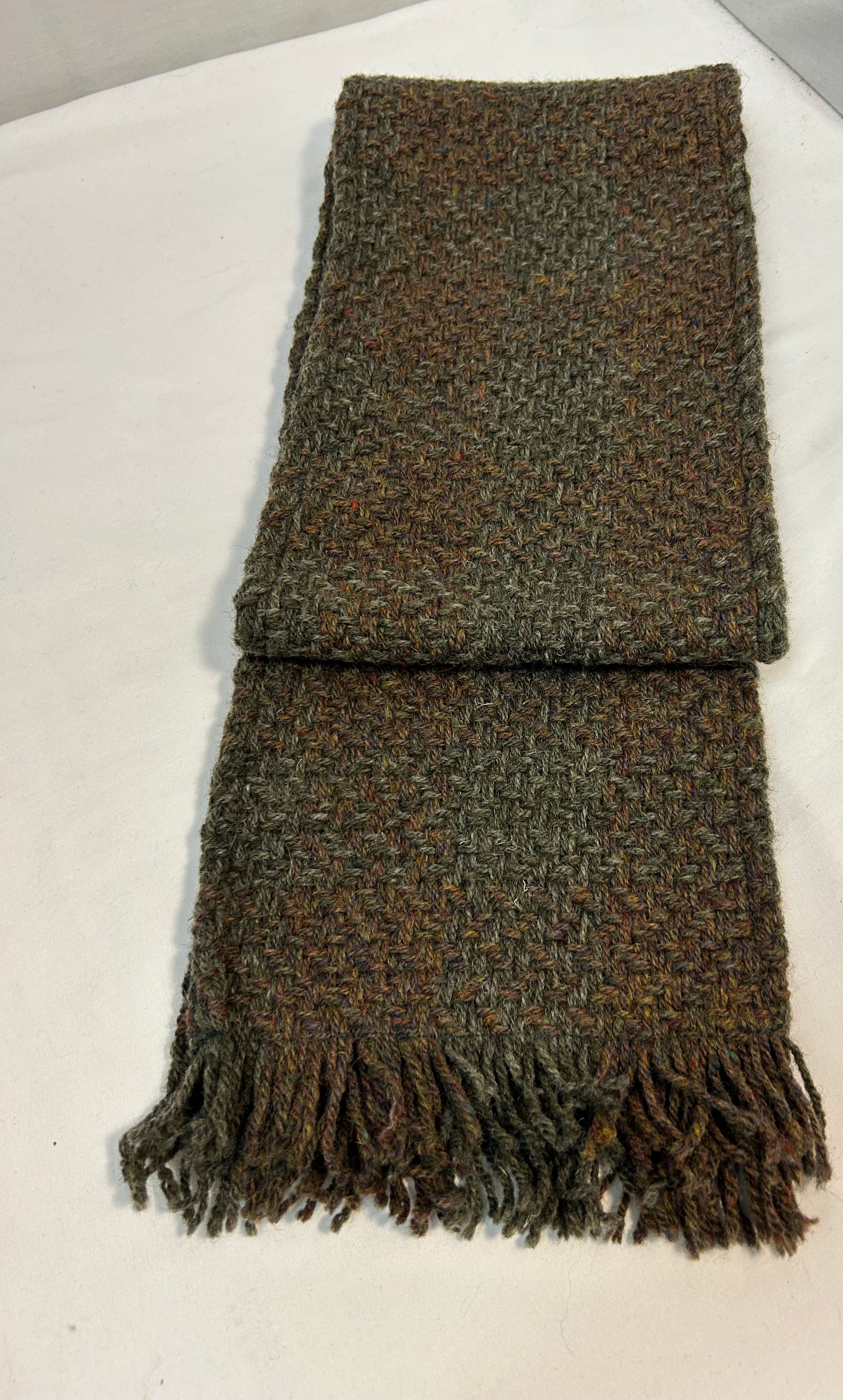Winter Scarf, Brown/Green, 73”x8”, Wool, Made in Ireland