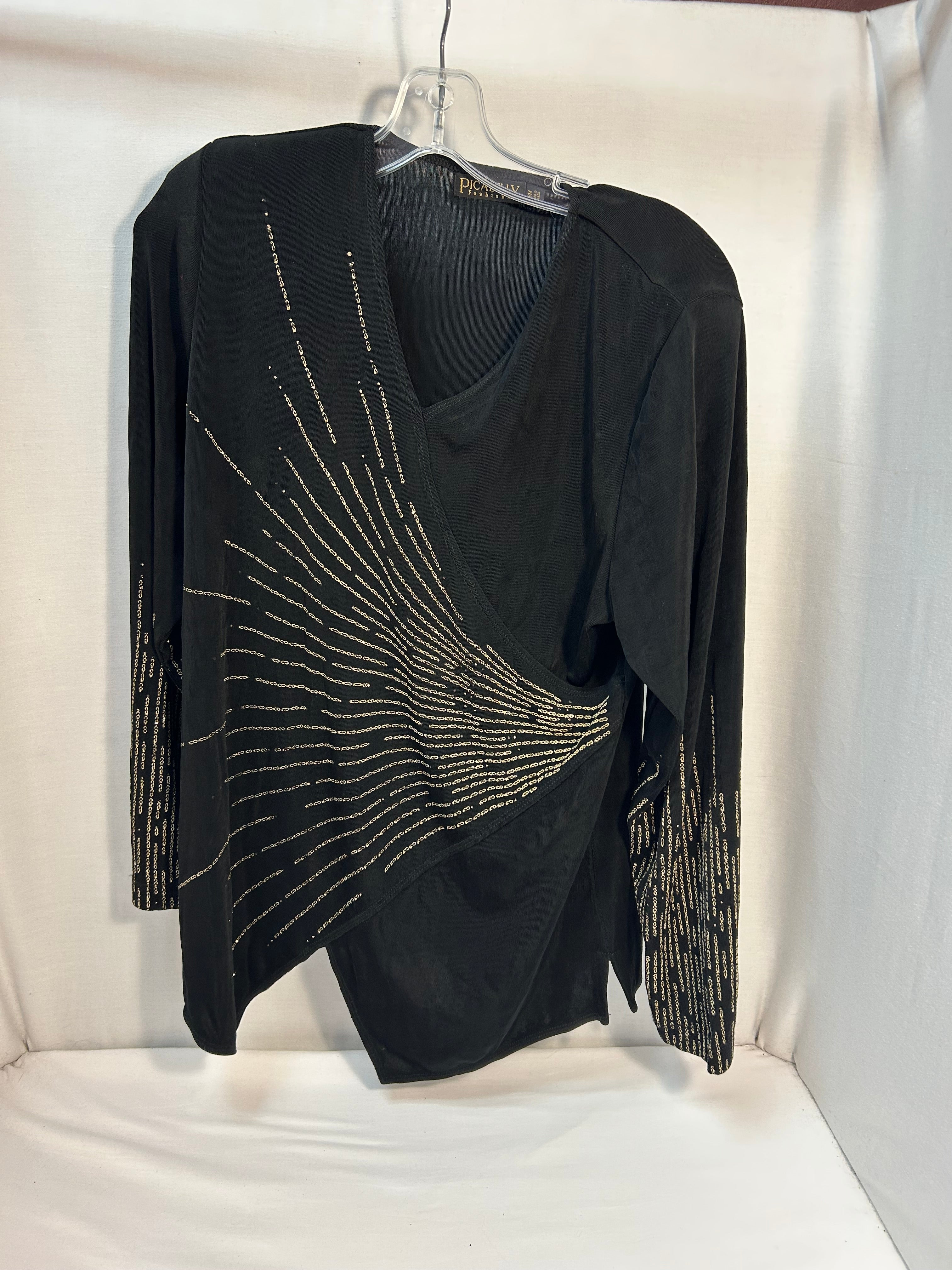 Ladies Elegant Glamour Top, Black with Gold Thread